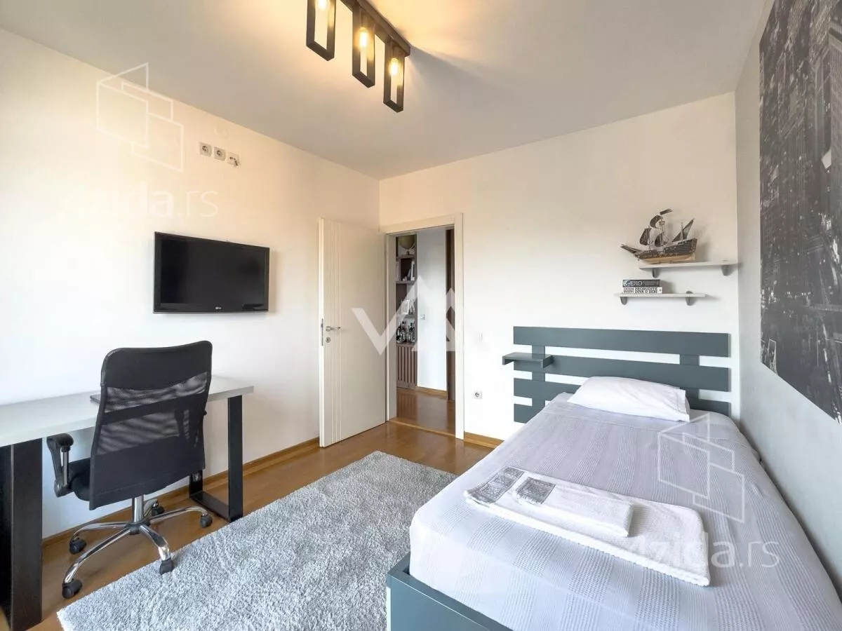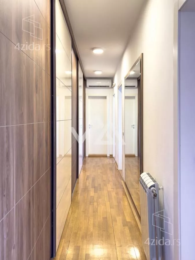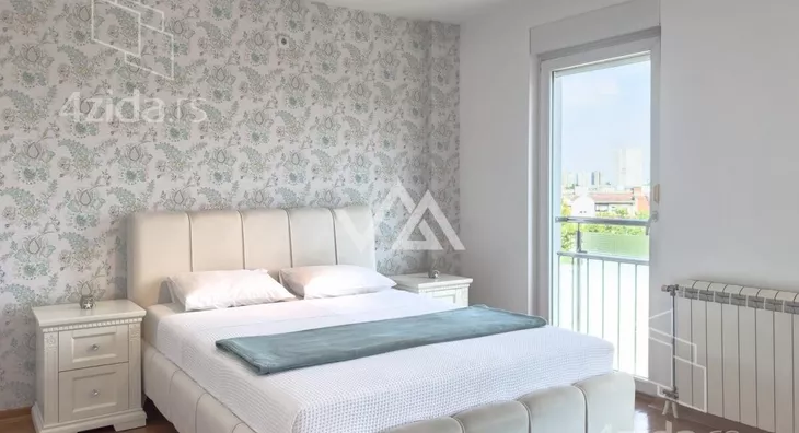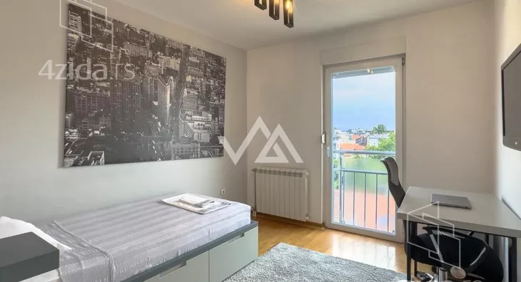 - Opremljenost: Namešteno - internet, interfon, TV, klima, veš mašina, sudo mašina, frižider, rerna, ležaj, plakar