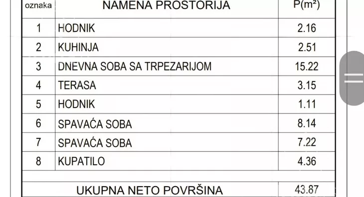 Prodaje se dvoiposoban stan u izgradnji. Površine je 42,55m2 i nalazi se na trećem spratu stambene zgrade sa liftom. Stan se sastoji od ulaznog hodnika, dnevne sobe sa trpezarijom i kuhinjom, dve spavaće sobe i kupatila i terase kao i krovne terase od 60m2. Uz kupovinu stana se dobija podrumska prostorija, dok u dvorištu zgrade postoji parking koji se može kupiti po ceni od 6000e. Zgrada se nalazi u neposrednoj blizini Kule i Osnovne škole "Kole Rašić", prodavnica i javnog prevoza. Odlična povezanost sa ostatkom grada. Postoji mogućnost kupovine stana putem stambenog kredita.