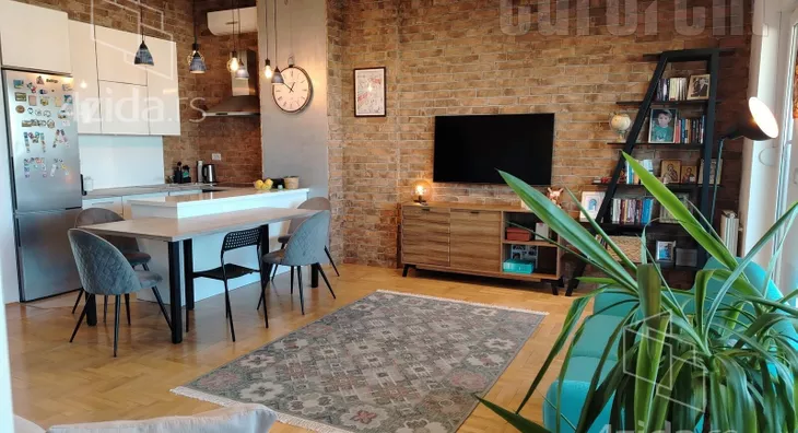 Odličan stan u novoizgrađenom naselju "Stepa Stepanović". Smešten je u centralnom delu naselja, u blizini vrtića i osnovne škole. Stan je pozicioniran na poslednjem spratu i specifičnog je izgleda. Poseduje vanstandardnu visinu plafona u jednom delu, dok se u drugom delu stana plafon spušta do standardne visine. Na raspolaganju su dve spavaće sobe, dva mokra čvora i predivan dnevno-trpezarijski prostor koji izlazi na ogromnu terasu, od oko 30m2, koja se prostire dužinom celog stana. Stan je uknjižen na 81m2, od čega je 70m2 grejne površine, a 30m2 terase. Terasa je veoma lepo i praktično zastakljena, sa idejom da se zadrži što više prirodnog svetla i pogleda. Sa visokog sprata pruža se odličan pogled, koji ne remete okolni objekti. Enterijer stana je vrlo lep i moderan, sa zanimljivim bojama, kamenim zidom i lepom rasvetom. Spavaće sobe su nešto manje. Namešten je atraktivnim komadima nameštaja, modernog dizajna. Odličan prostor pogodan za par ili manju porodicu. Mogućnost zakupa garažnom mesta, uz doplatu.