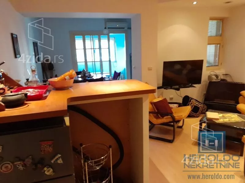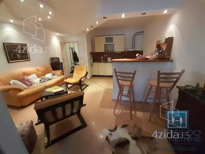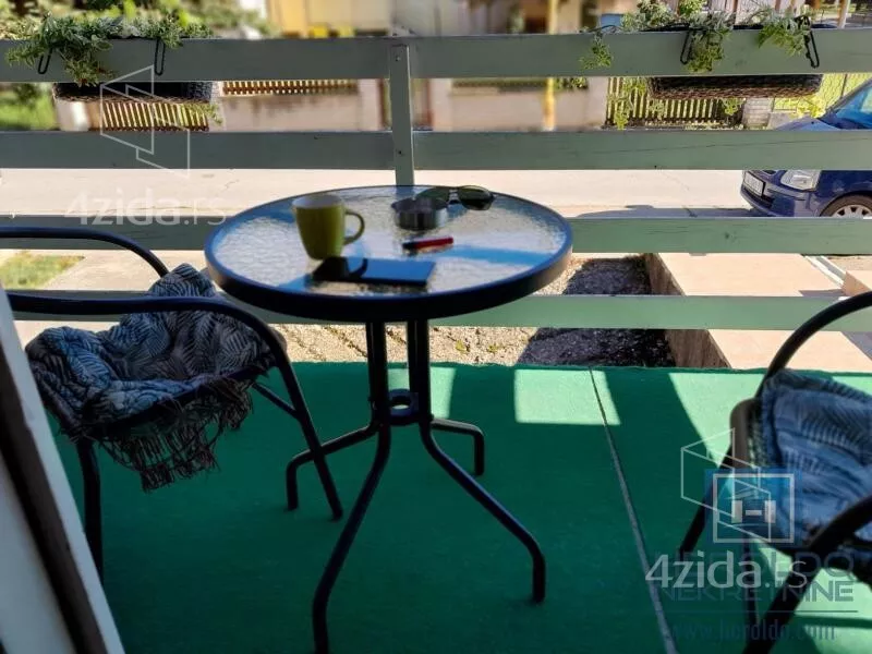 Lep stan u mirnom delu grada,u neposrednoj blizini vrtića,osnovne škole,pijace i većeg marketa..Sastoji se od velikog dnevnog boravka,dve spavaće sobe,hodnika i kupatila.Ima pripadajuće dvorište i izlaz na dvorište iz stana,podrum,klima.U cenu ulaze gasne peći i kuhinjski elementi sa šankom.