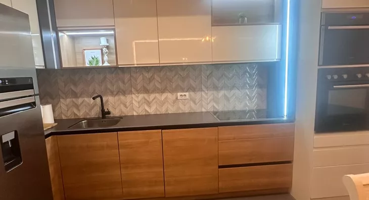 - Kuhinja od farbanog medijapana sa modernim ugradnim uređajima
