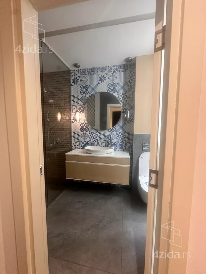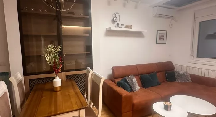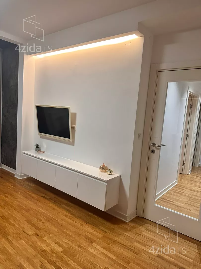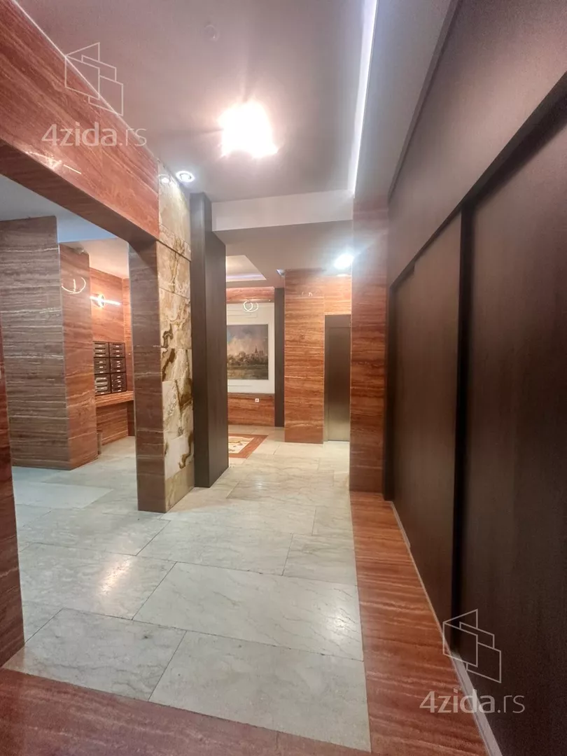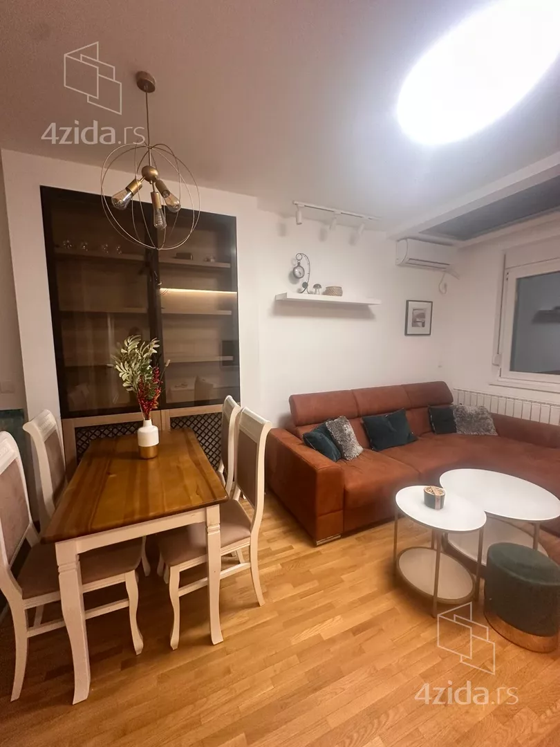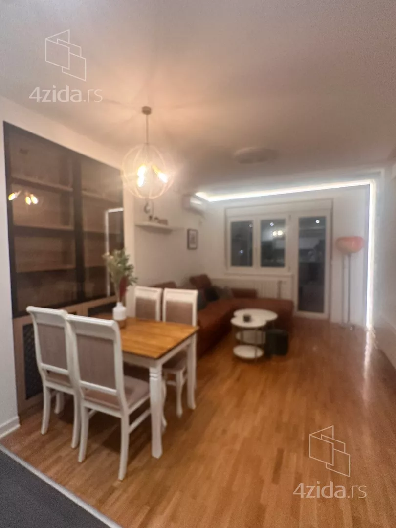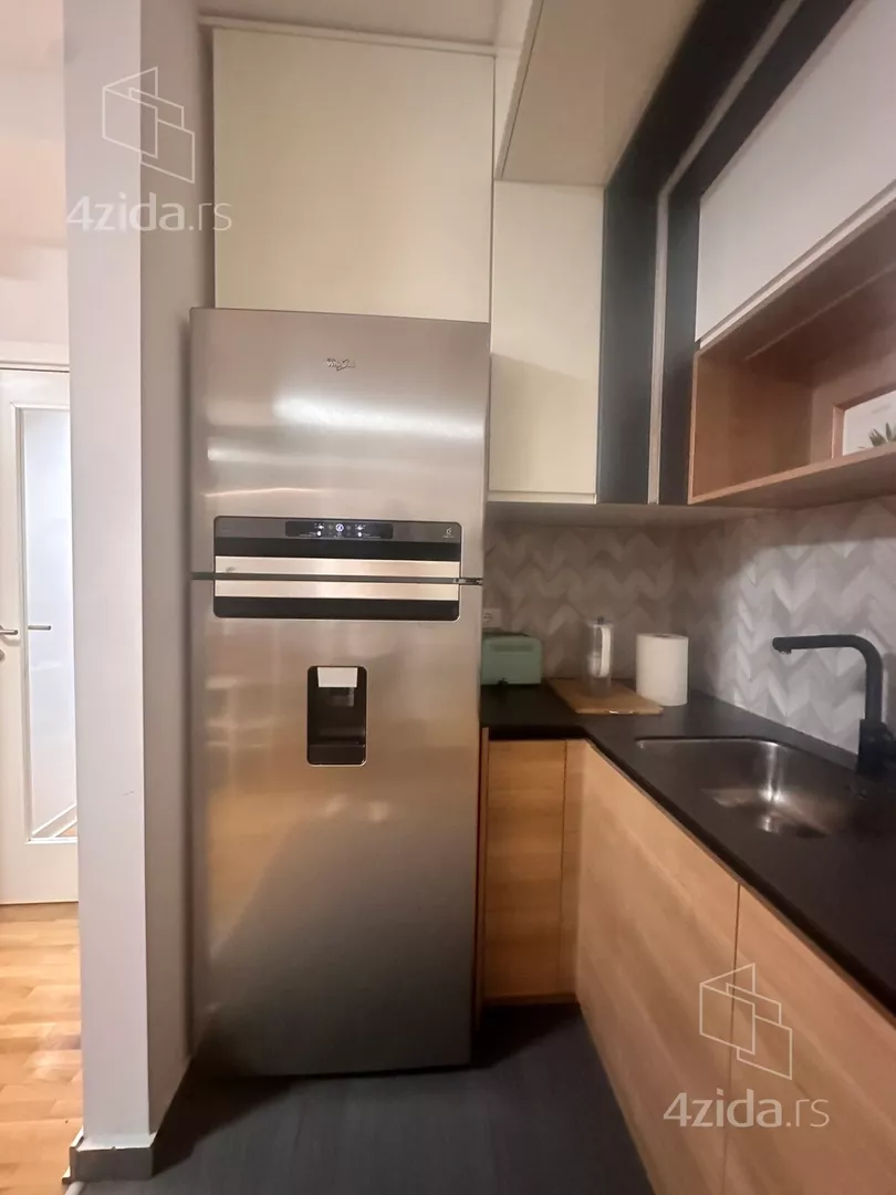 - Opremljenost: Namešteno - internet, interfon, TV, klima, veš mašina, kuhinjski elementi, sudo mašina, frižider, zamrzivač, mikrotalasna rerna, šporet, rerna, ležaj, plakar, ugradni plakar, kancelarijski nameštaj