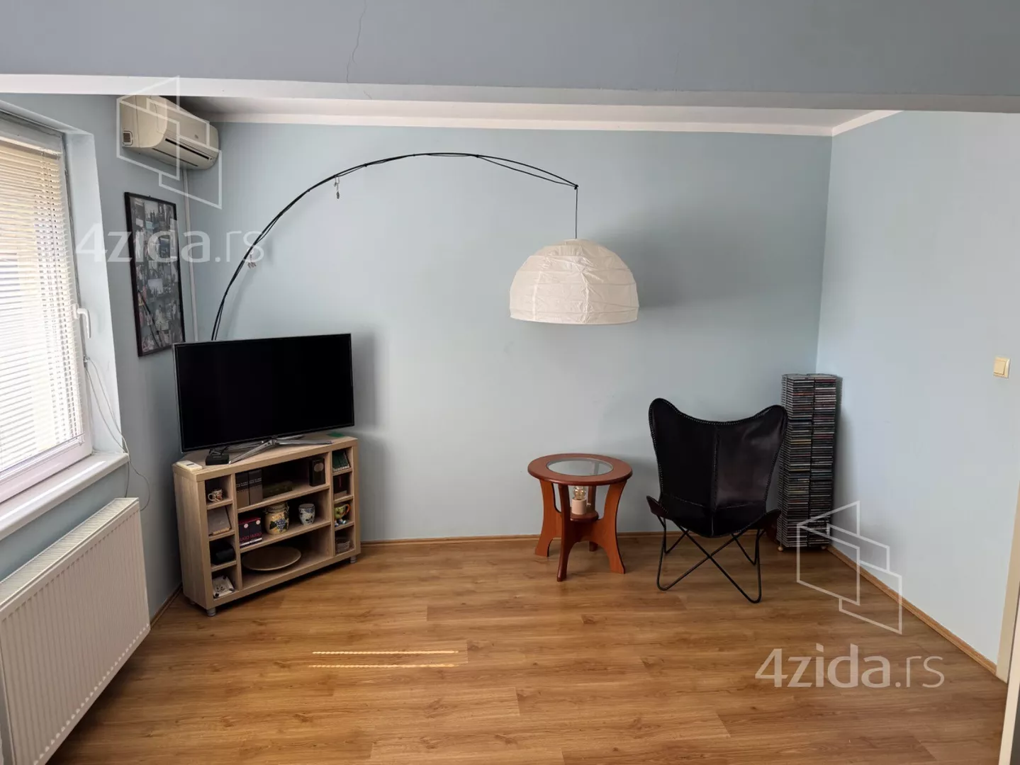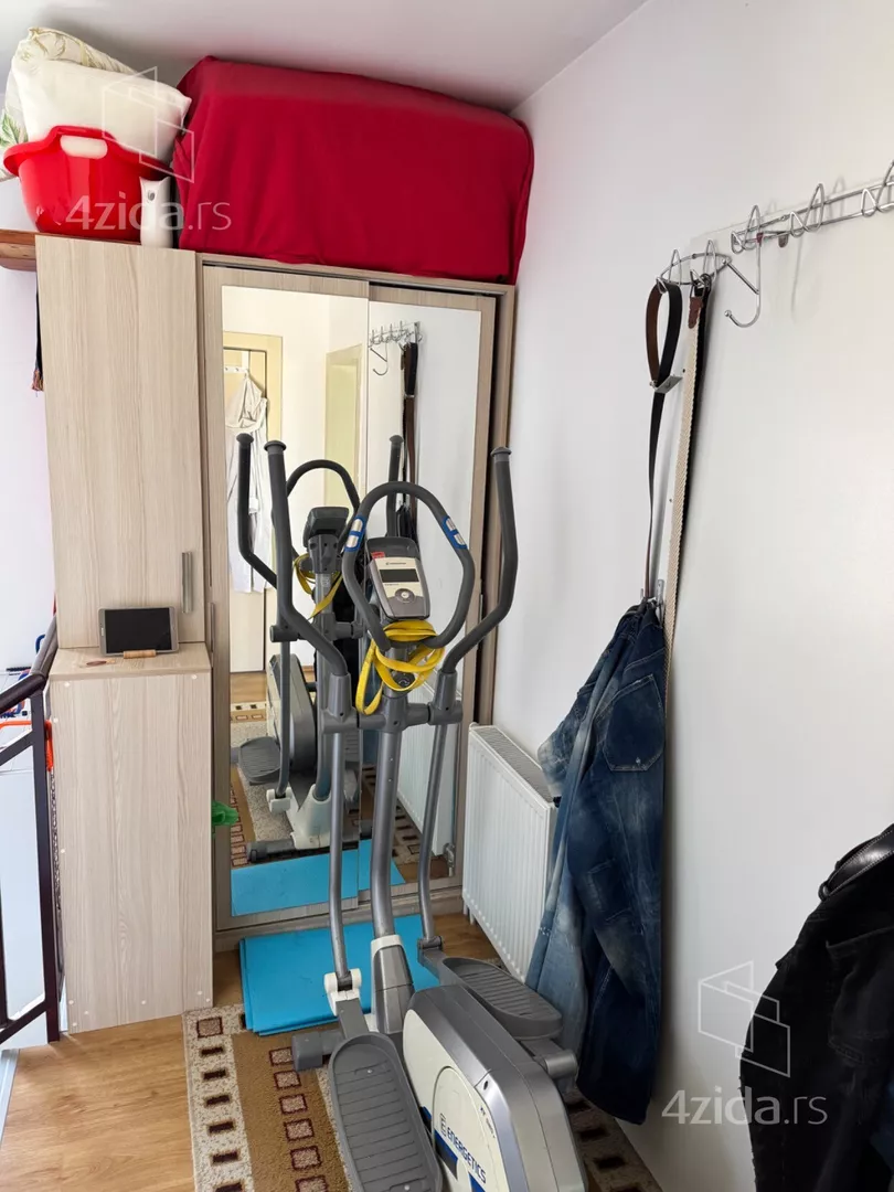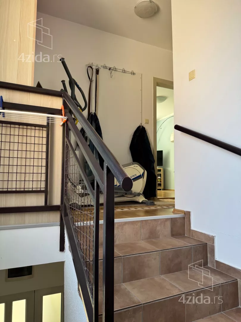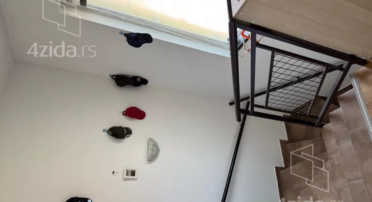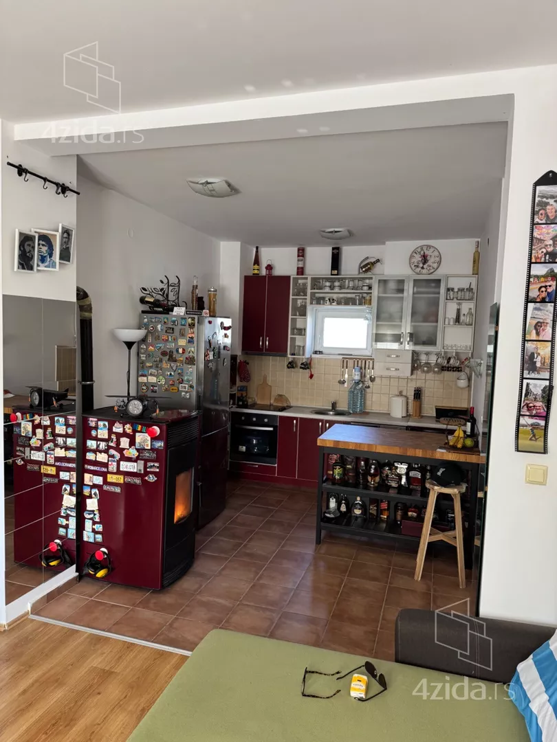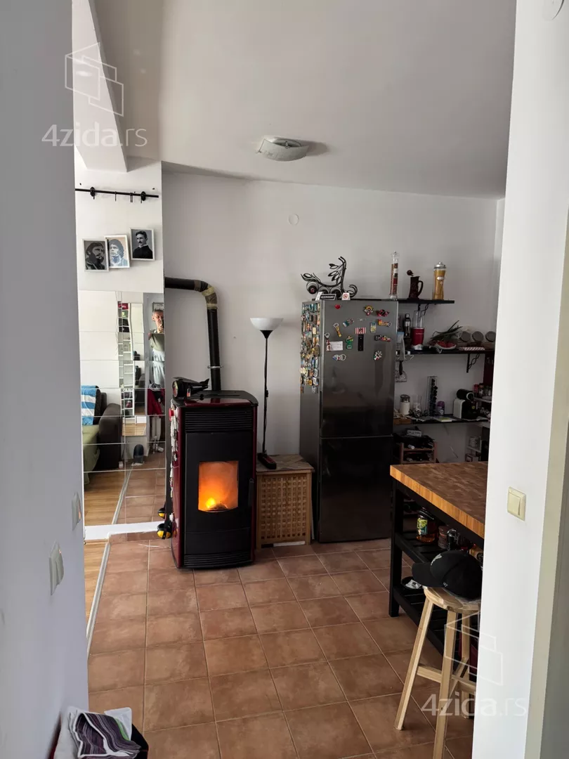Raspored prostora je funkcionalan – donji nivo čine dnevni boravak sa kuhinjom i trpezarijom, kupatilo i ostava, dok se na gornjem nivou nalaze spavaća soba i dodatni toalet. Stan je polunamešten i opremljen osnovnim elementima – kuhinjskim elementima, klimom i priključkom za internet i kablovsku televiziju. Grejanje je etažno, što omogućava kontrolu troškova.