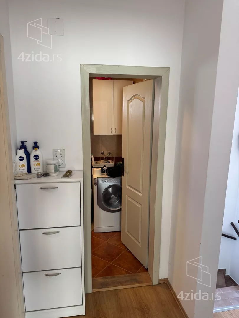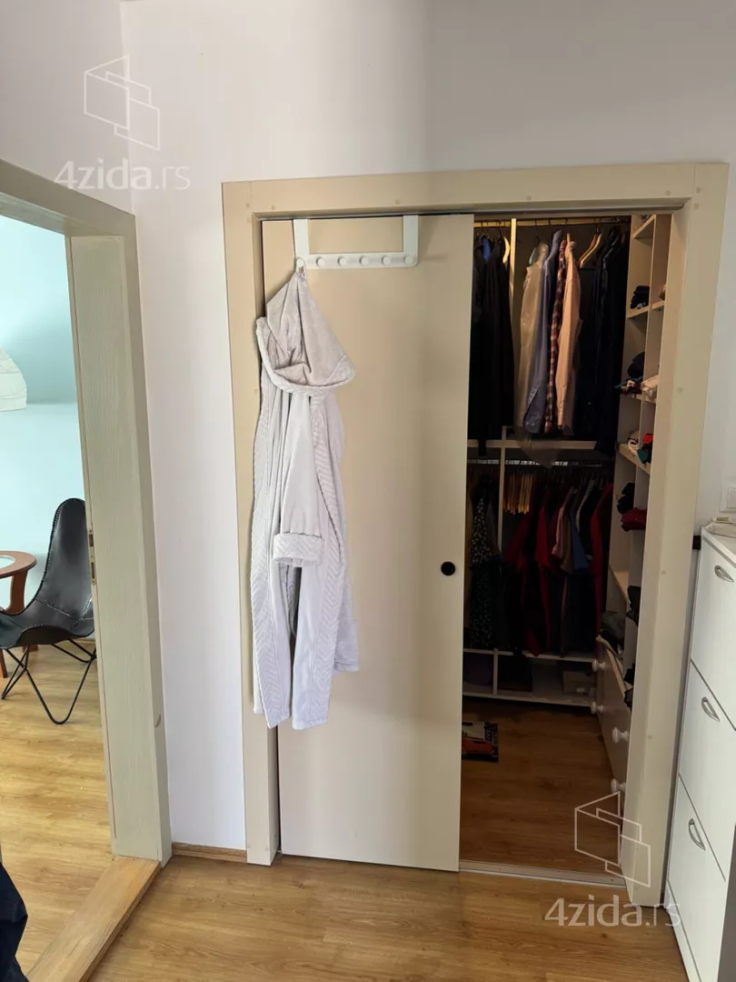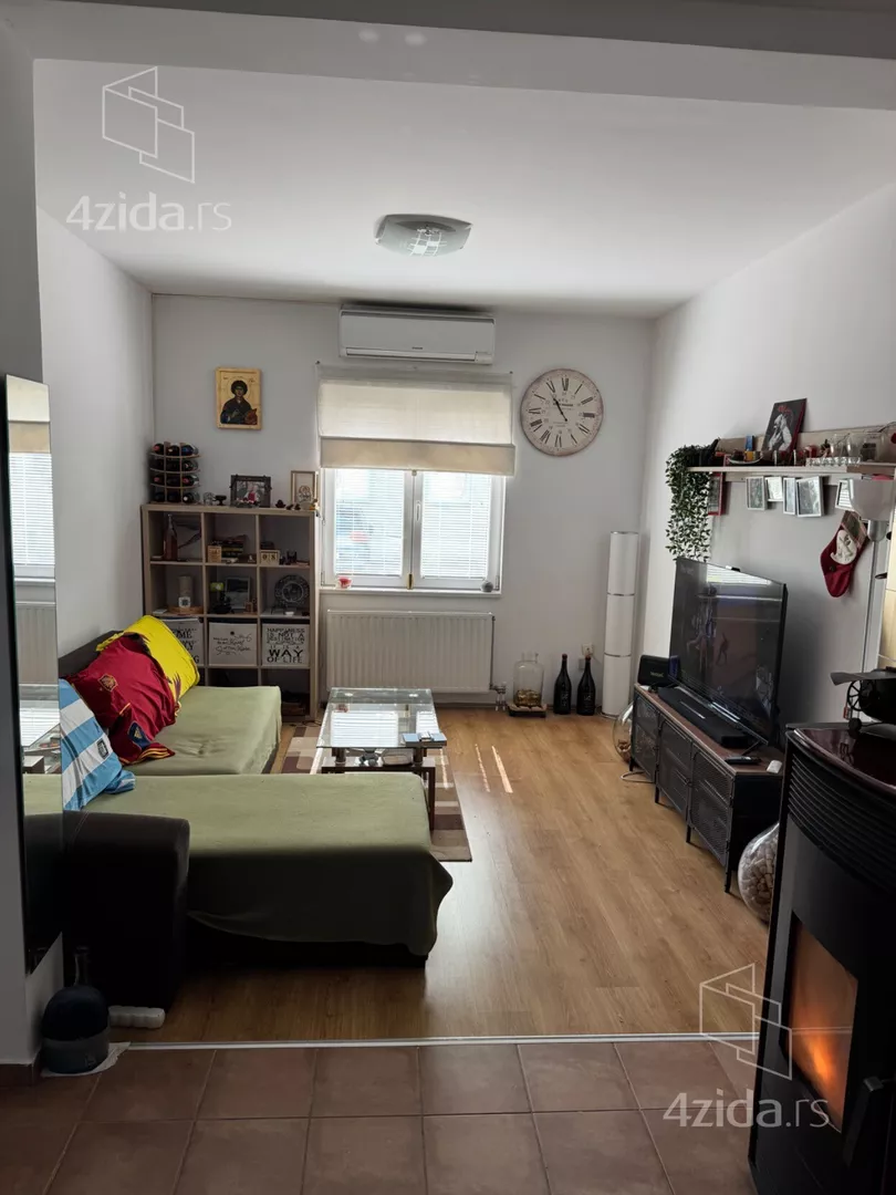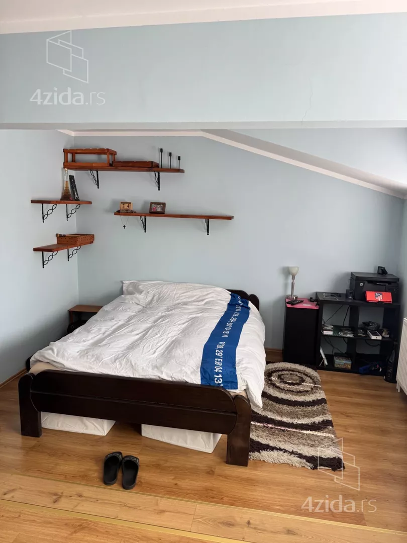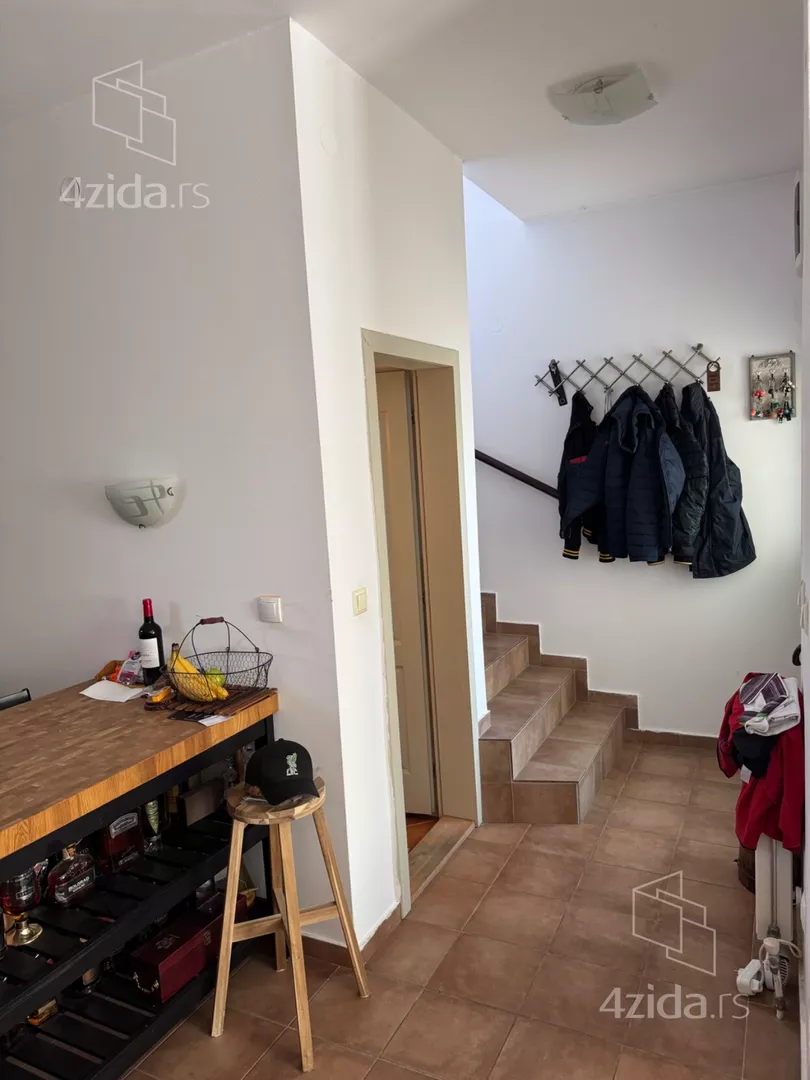 Raspored prostora je funkcionalan – donji nivo čine dnevni boravak sa kuhinjom i trpezarijom, kupatilo i ostava, dok se na gornjem nivou nalaze spavaća soba i dodatni toalet. Stan je polunamešten i opremljen osnovnim elementima – kuhinjskim elementima, klimom i priključkom za internet i kablovsku televiziju. Grejanje je etažno, što omogućava kontrolu troškova.