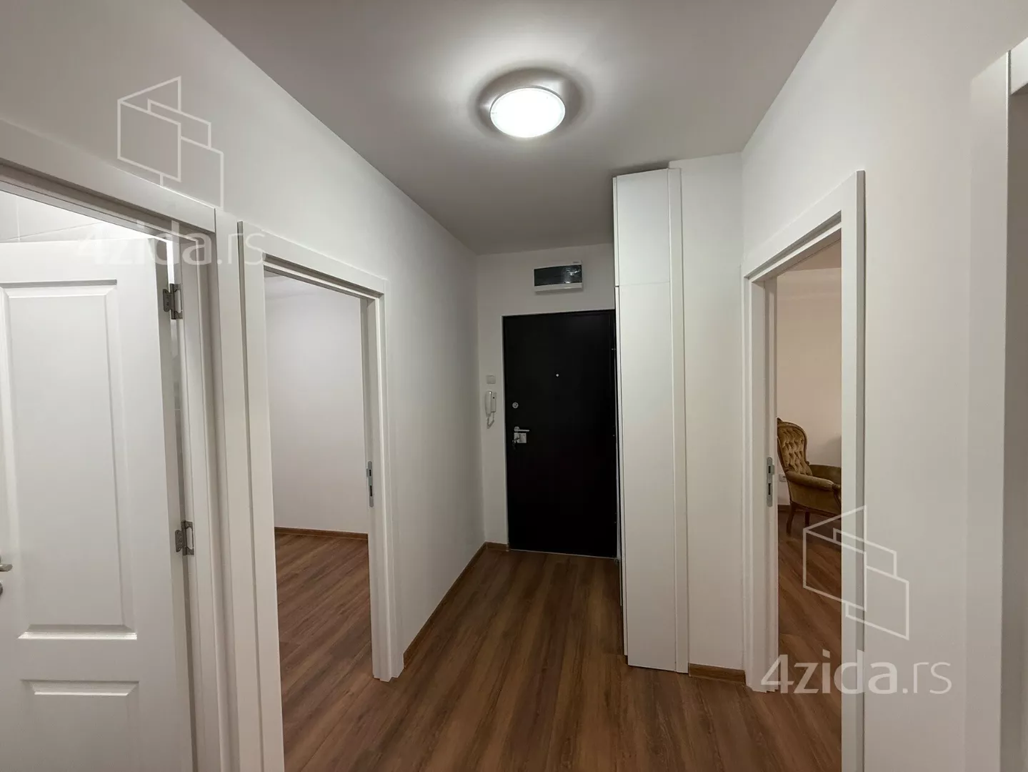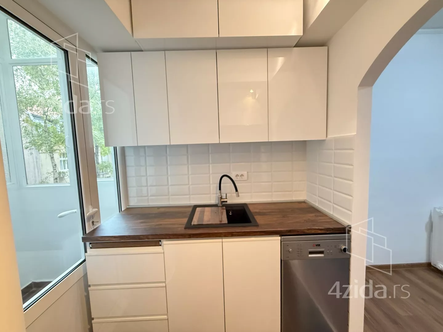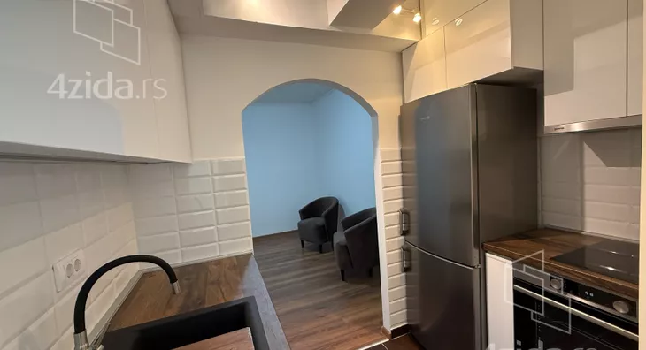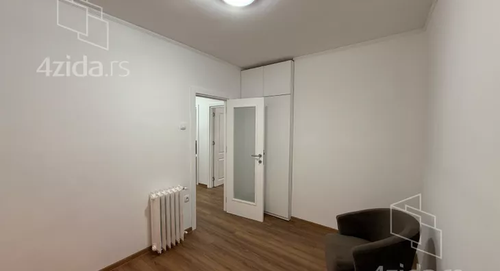 - Opremljenost: Polunamešteno - internet, klima, veš mašina, kuhinjski elementi, sudo mašina, frižider, zamrzivač, šporet, rerna, ležaj, plakar, ugradni plakar, kancelarijski nameštaj