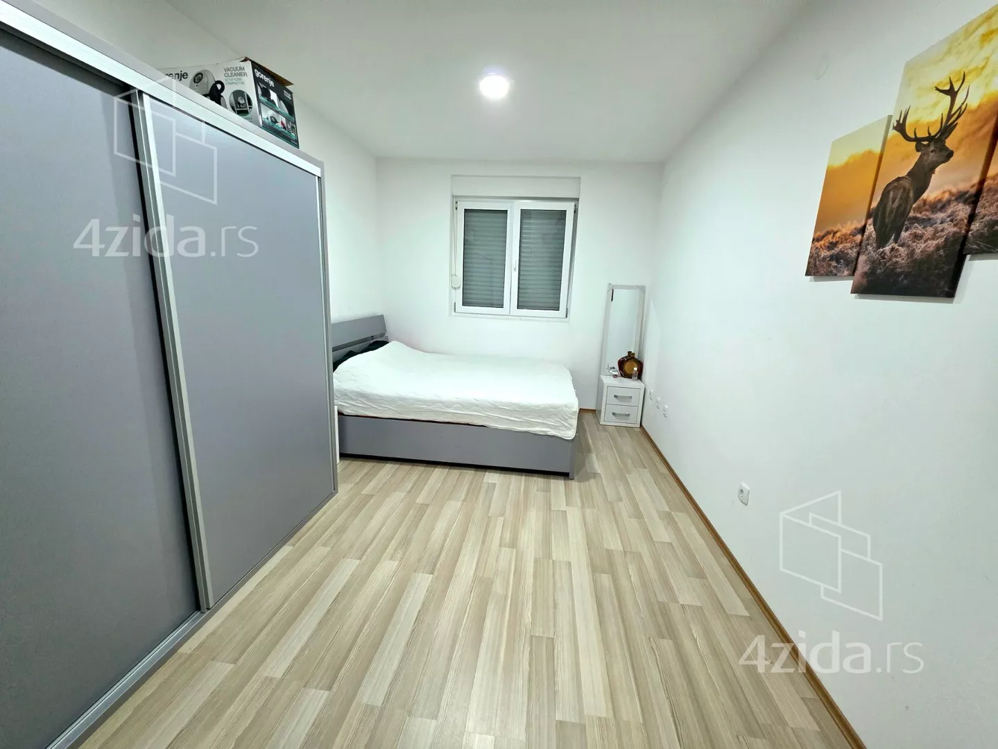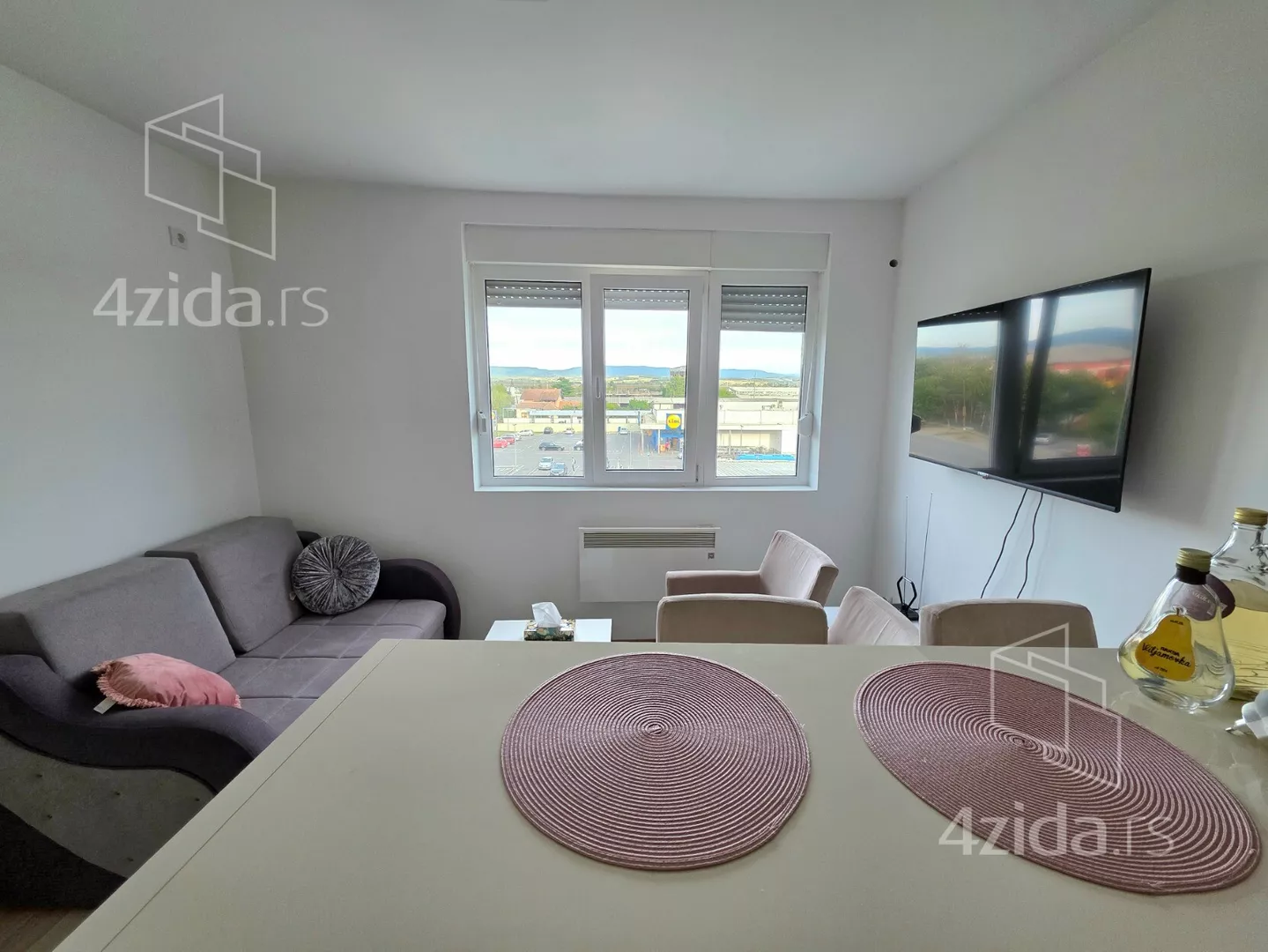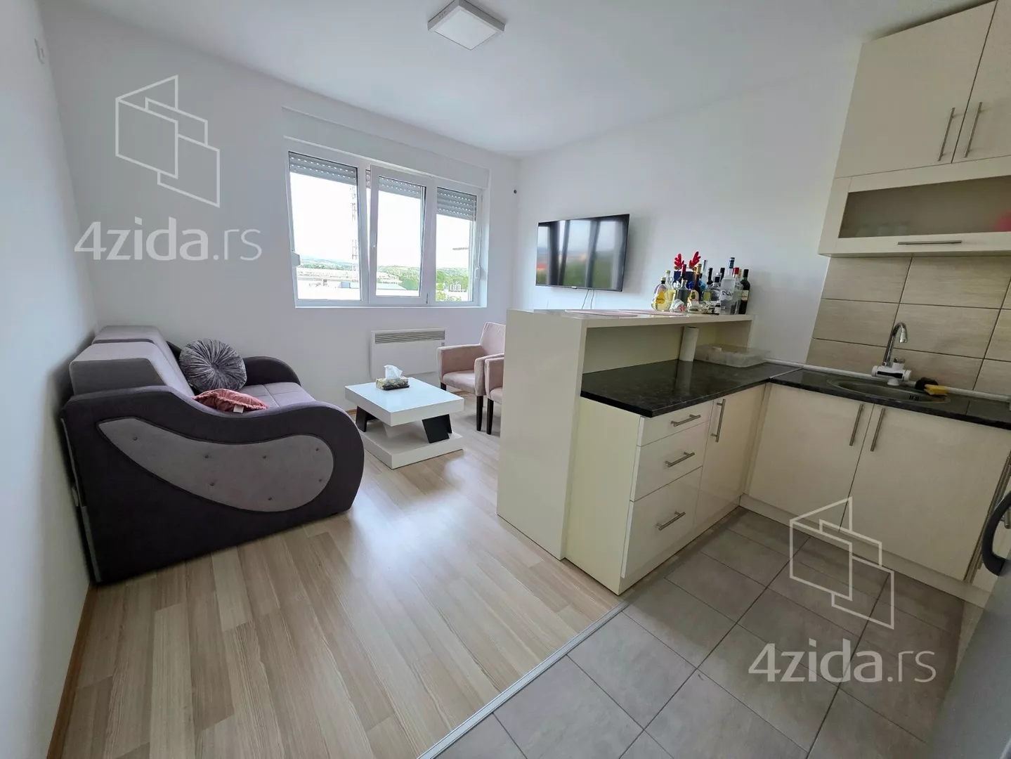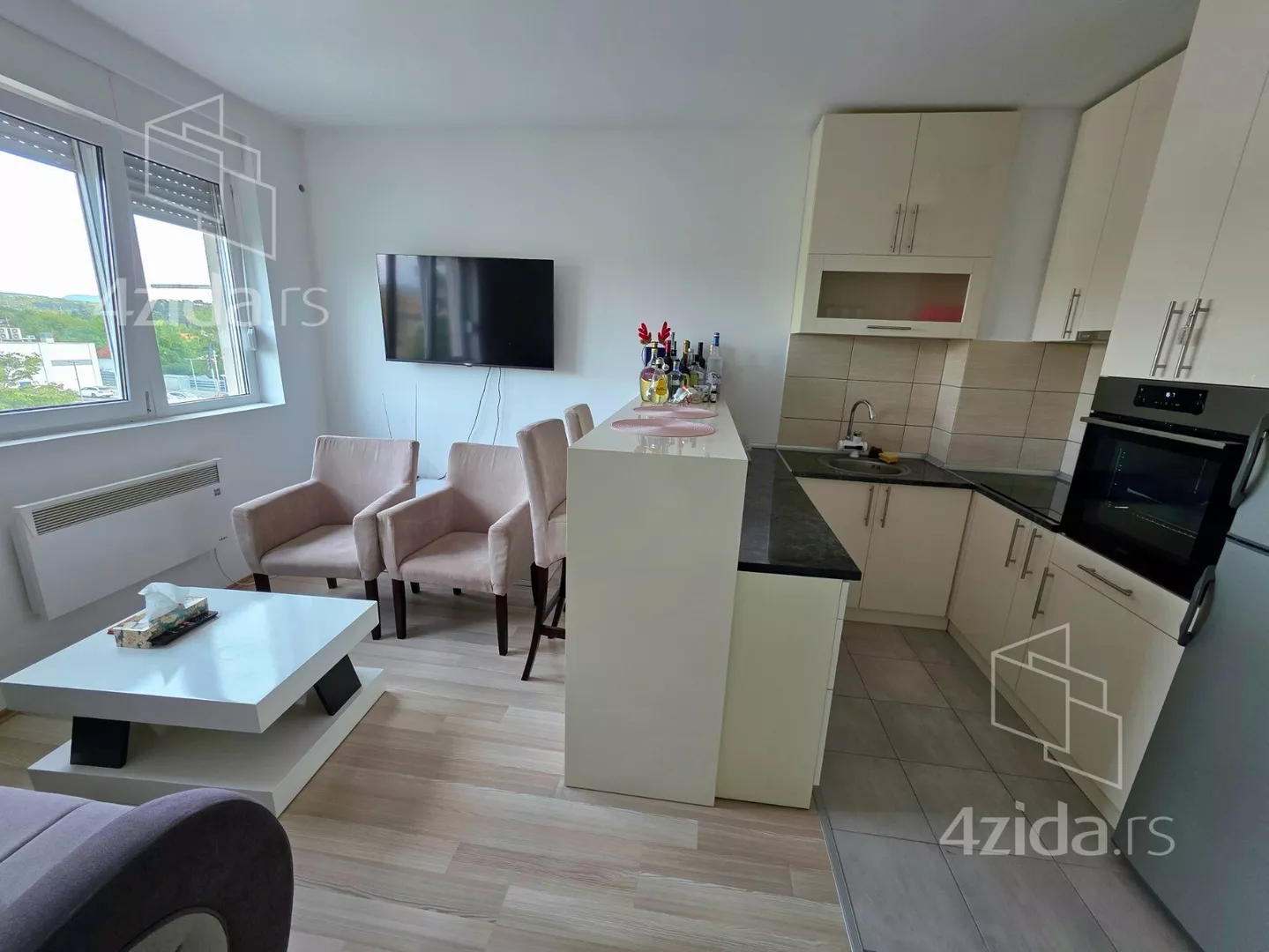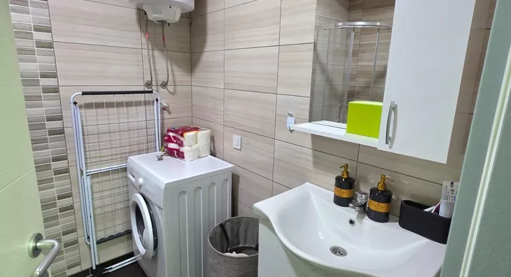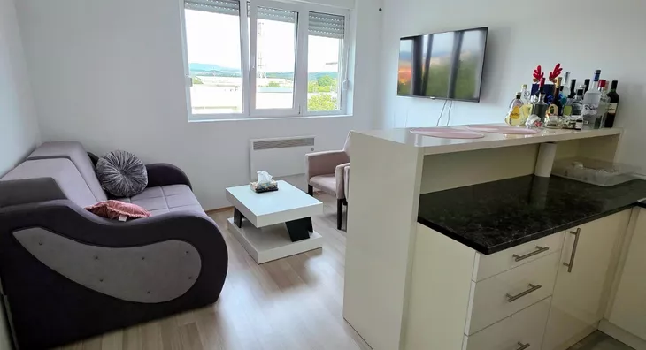 - Opremljenost: Namešteno - TV, veš mašina, kuhinjski elementi, frižider, zamrzivač, šporet, rerna, ležaj, ugradni plakar