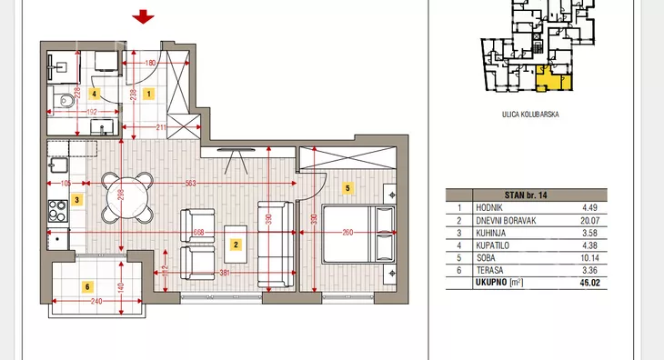 Jednoiposoban stan na prodaju, Kolubarska, 75.930€, 46m²