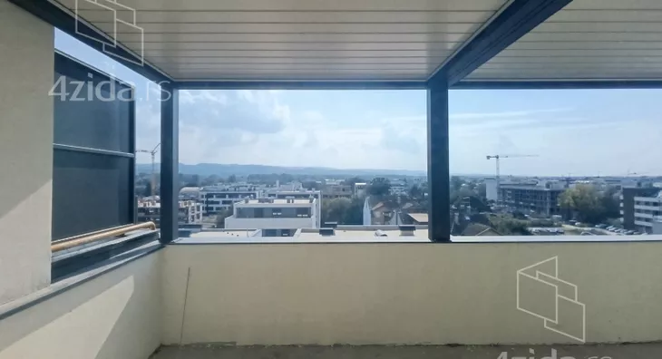 It features two spacious rooftop terraces with a stunning view of Fruška Gora, a central air conditioning system for the entire apartment, private elevator access directly into the apartment, and three parking spaces in the courtyard included in the price.
