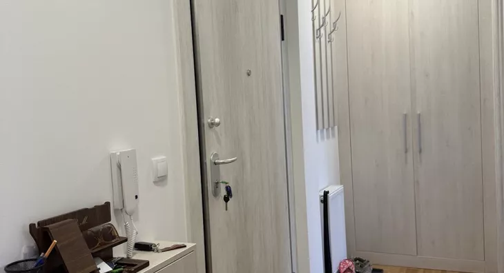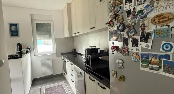 U ceni ostaje ugradni nameštaj ,parking mesto i