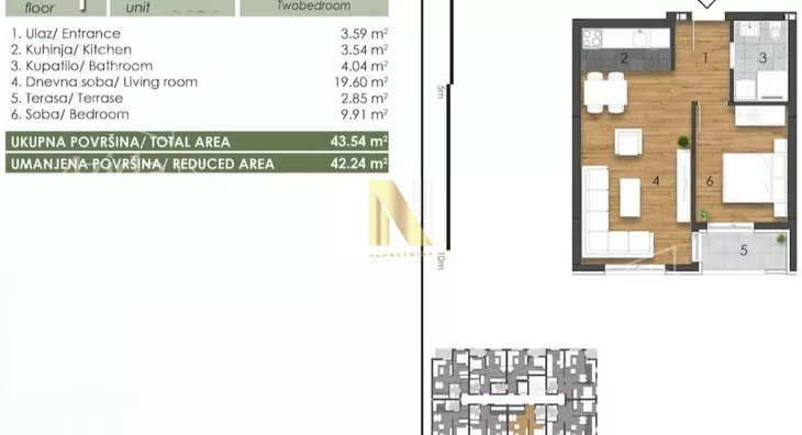 Dvosoban stan na prodaju, Telep, 118.250€, 43m²