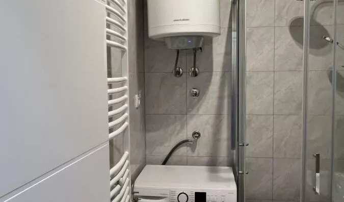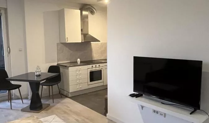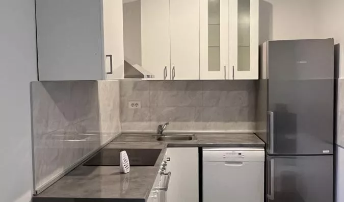 - Opremljenost: Namešteno - interfon, TV, klima, veš mašina, sudo mašina, frižider, rerna, ležaj, plakar