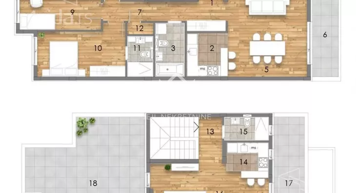 Telep, 146.50m2 + 54.22 m2 (terasa-GRATIS), petosoban- fantastičan (dupleks) stan, postoji mogućnost kupovine kako parking mesta, tako i garažnog.