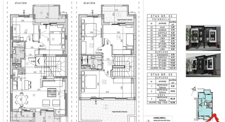 Svaki stan poseduje čak 90 m² krovnih terasa, koje dodatno obogaćuju životni prostor, ali ne ulaze u uknjiženu kvadraturu.