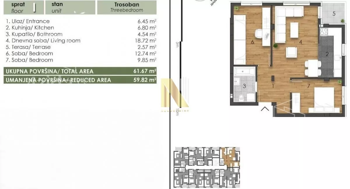 Trosoban stan na prodaju, Telep, 167.750€, 61m²