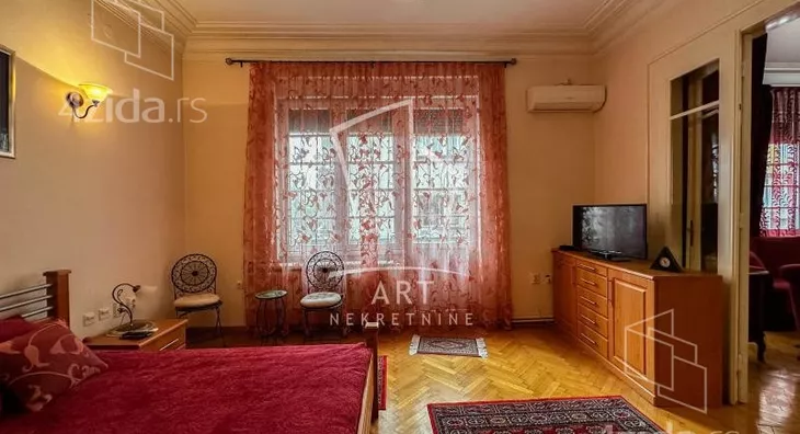 U prilici smo da Vam, na prestižnoj lokaciji, u strogom centru grada, ponudimo: uknjižen, impresivan, estetski atraktivan i funkcionalan 4.0. lux salonski stan, dvostrane orijentacije. Prestižna lokacija ove nekretnine, pored kvalitetne infrastrukture, nudi i nebrojane za svakodnevni život neophodne sadržaje i funkcionalnosti, kao i neposrednu i direktnu povezanost sa svim ključnim tačkama u centru grada. Ova nekretnina se nalazi na drugom spratu zgrade sa mermernim ulazom, izuzetno kvalitetne predratne gradnje. Stan je uknjižen na 113 m2, stvarna grejna površina stana je utvrđena prilikom uvođenja centralnog grejanja i iznosi 130 m2. U površinu stana nije ušla kvadratura 2 terase ukupne površine cca 8 m2. Ovu jedinstvenu nekretninu čine: ulazni hodnik sa velikim garderoberom, povezanim sa prijemnim salonom, odvojenom kuhinjom (kompletno opremljena elementima i belom tehnikom) i ostavom, prostranim dnevnim boravkom, dve spavaće sobe sa terasama i kupatilom. Pored izuzetne funkcionalnosti i iskorišćenosti prostora, enterijer stana kao i odabir visokokvalitetnih materijala koji su korišćenji pre 4 godine, prilikom kompletnog renoviranja, uređenja i opremanja stana (italijanska keramika, sanitarija,stolarija sa elektro roletnama) pružaju dodatni osećaj luksuza i udobnosti, koji prostor za svakodnevni boravak čine udobnim, toplim, životnim i funkcionalnim. Ovo je idealna prilika i ujedno preporuka za kupovinu ove lux nekretnine, za sve one koji traže moderan, izuzetno funkcionalan, miran i veoma svetao stan dvostrane orijentacije za porodičan zivot u njemu, ili kao investicija za izdavanje (kozmetički salon, ordinacija, projektni biro, agencije, adv.kancelarijai sl.). Zgrada ima lift. U cenu stana uračunati su: kompletno opremljena kuhinja sa elementima i belom tehnikom, ugradni plakari i garderoberi, 2 inverter klime. U dogovoru sa vlasnikom, a po izričitoj želji kupca, postoji mogućnost kupovine komplet nameštenog stana. Prednost kupovine ove nepokretnosti je mogućnost zakupa garažnom mesta - garaže, neposredno uz samu zgradu. Agencijska provizija 2% Agent: Vesko Čarapić, br. licence 1645 Art nekretnine d.o.o. Beograd reg.br.339 011... (prikaži broj telefona) .