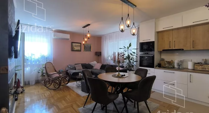Prodaje se dvoiposoban, nov stan namešten sa ugradnim plakarima i kuhinjom. Na podovima su parketi i keramika. Stan ima klimu. Prodaje se sa parking mestom u vlasništvu.