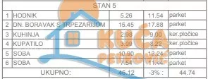 Na prodaju stan u izgradnji u stambenoj zgradi PO+PR+3, sa 14 stambenih jedinica. Zgrada se nalazi u mirnoj ulici na Trošarini u blizini osnovne škole, obdaništa, PMF-a, Bogoslovije... Odlična investicija, kako za stanovanje, tako i za izdavanje. Stan je po strukturi dvoiposoban, površine 44.74 m2. Sastoji se od hodnika, dnevne sobe sa kuhinjom i trpezarijom, dve spavaće sobe, kupatila i terase. Stan se nalazi na prvom spratu zgrade sa liftom, na podovima je parket, u kuhinji i kupatilu kvalitetna keramika, pvc stolarija sa roletnama, grejanje i hlađenje inverter klimama. Završetak radova predviđen je za 01.09.2027. godine. Parking mesta u dvorištu i podzemnoj garaži se naknadno naplaćuju. Objekat je u fazi rekonstrukcije i izgradnje, tako da će pojedine stambene jedinice imati određeni procenat povraćaja PDV-a za kupce prvog stana. Ovo je samo deo naše ponude, za više informacija javite se i posetite naš sajt.