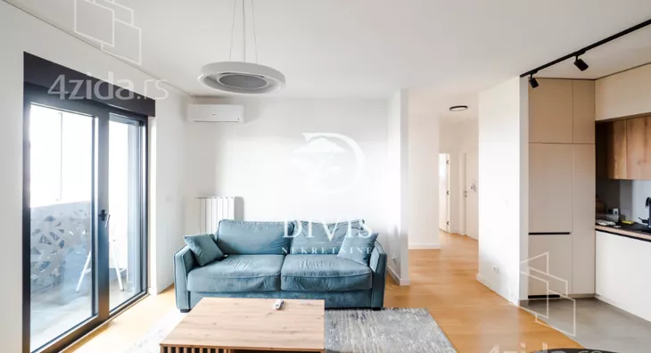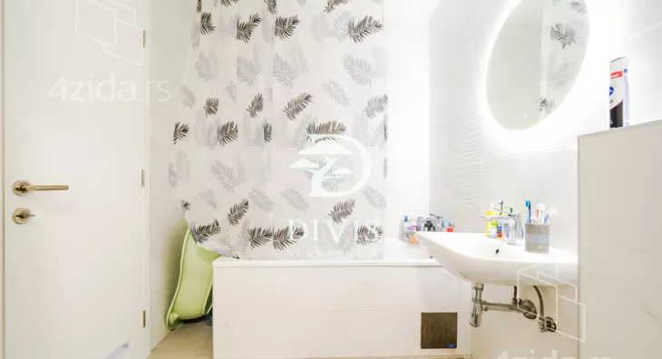 Stan ima izuzetno funckionalan raspored, izdvaja se od ostatka ponude u ovom kompleksu po stukturi i sastoji se od; prostranog open space dnevnog boravka sa kuhinjom i trpezarijom, tri spavaće sobe, prostranog kupatila za izdvojenim delom za vešeraj, dodatni toalet, hodnik i dve velike terase koje pružaju otvoren pogled i dodatni komfor. Enterijer je osmišljen za savremen način života, sa obiljem prirodnog svetla tokom celog dana.