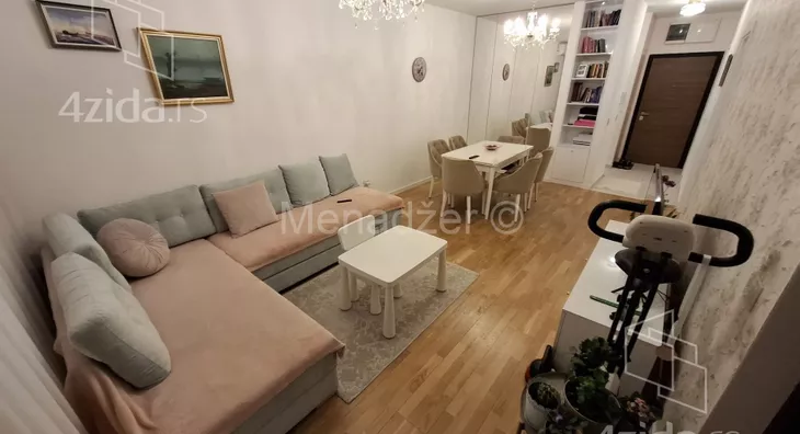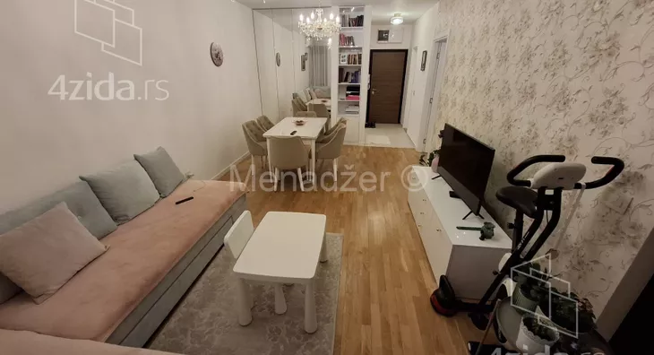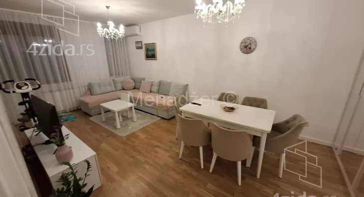 Stan se nalazi na šestom spratu. Sunčan i svetao stan, klima, grejanje na gas po potrosnji, alu stolarijom, protiv pozarnim ulaznim vratima, velikom terasom, vhunskom opremom. Stan se prodaje polunamesten, i prodaje se savim ugradim namestajem i belom tehnikom, na kojima se nije stedelo. Sva bela tehnika koja ostaje su premium klase, U garanciji. Ugradna kuhinja ostaje, kombinacija medijapana-mermera i granita. sa vrhunskim klizacima, usporivacima, baterijom... U kupatili ostaje kupatilski nameštaj. Od prostorija stan ima ulazni hodnik sa ugradnim plakarom, ulaz u veliki dnevno trpezarijaki boravak. odvojenom potpunno luksuzno opremljenom kuhinjom, izlazom na lepu lodju sa otvornenim pogledom. Tu je i velika spavaca soba, gde ostaje ugradi plalar, Stan ima klimu. Niski rezijski troskovi. Odlicna spoljna izolacija koja stedi energiju. Energetski pasoš, Idelana prilika za zivot porodice u savrsenom okruzennju, a isto tako i kao odlična investcija za rentiranje.