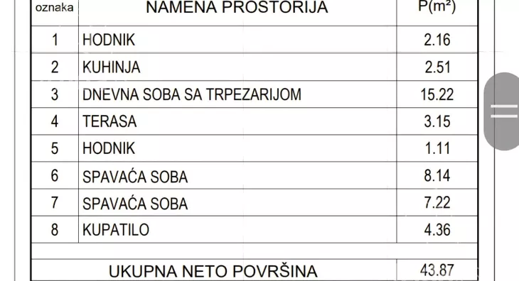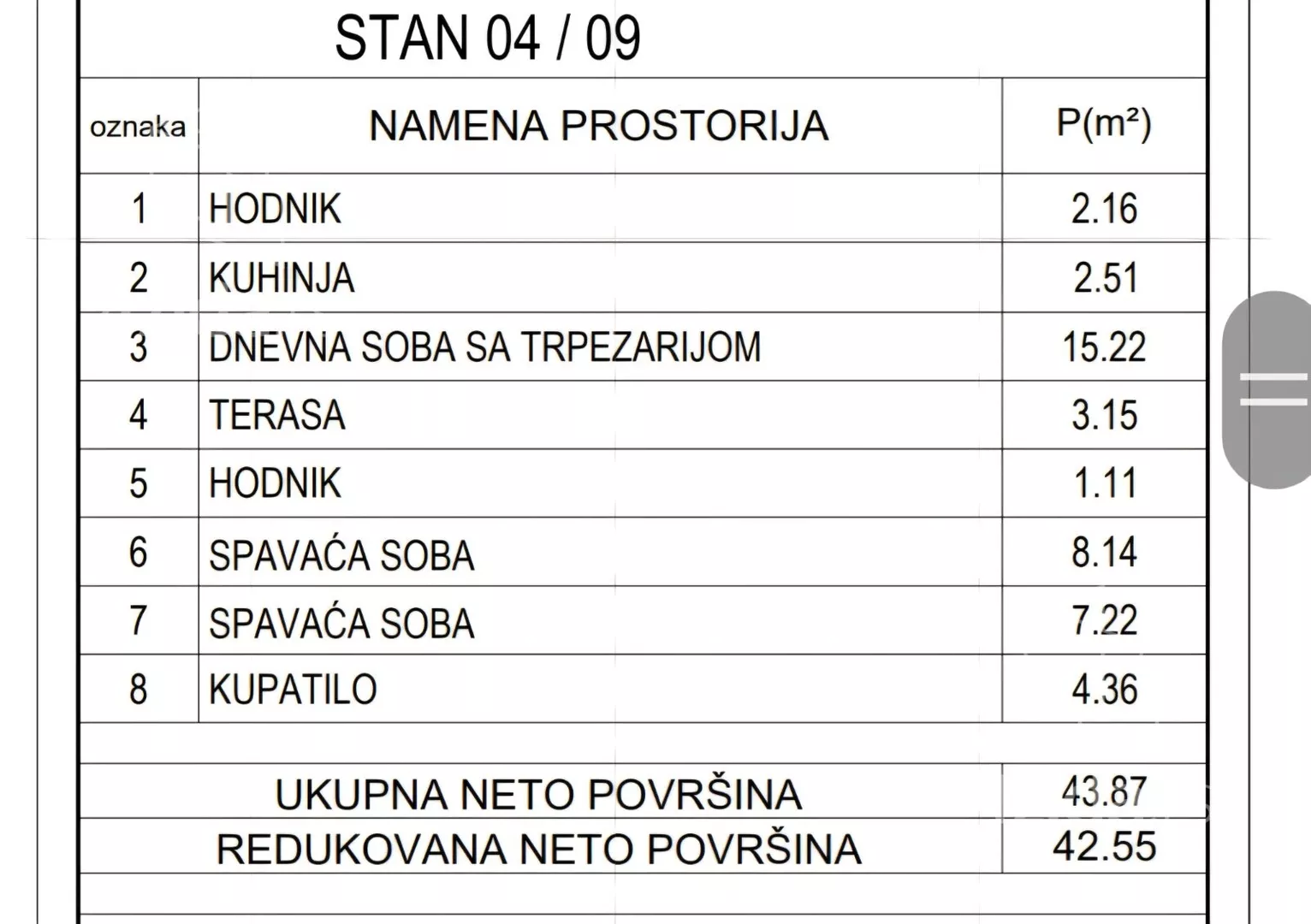 U prilici smo da vam ponudimo na prodaju stan u novogradnji na teritiruji GO Palilula, u blizini "Tutunović podruma" (Kule). Po strukturi dvoiposoban, projektovane kvadrature 43m2, nalazi se na I spratu manje stambene zgrade sa liftom. Sastoji se iz ulaznog hodnika, kupatila, kuhinje, dnevne sobe sa trpezarijom, predsoblja, dve spavaće sobe i terase. Spoljna stolarija je PVC, renomiranog proizvođača "REHAU", podovi su obloženi parketom i keramikom, grejanje je na inverter klime ili etažno (postavljena instalacija za etažno grejanje ulazi u cenu). Stanu pripada i odgovarajuća ostava u podrumu zgrade.