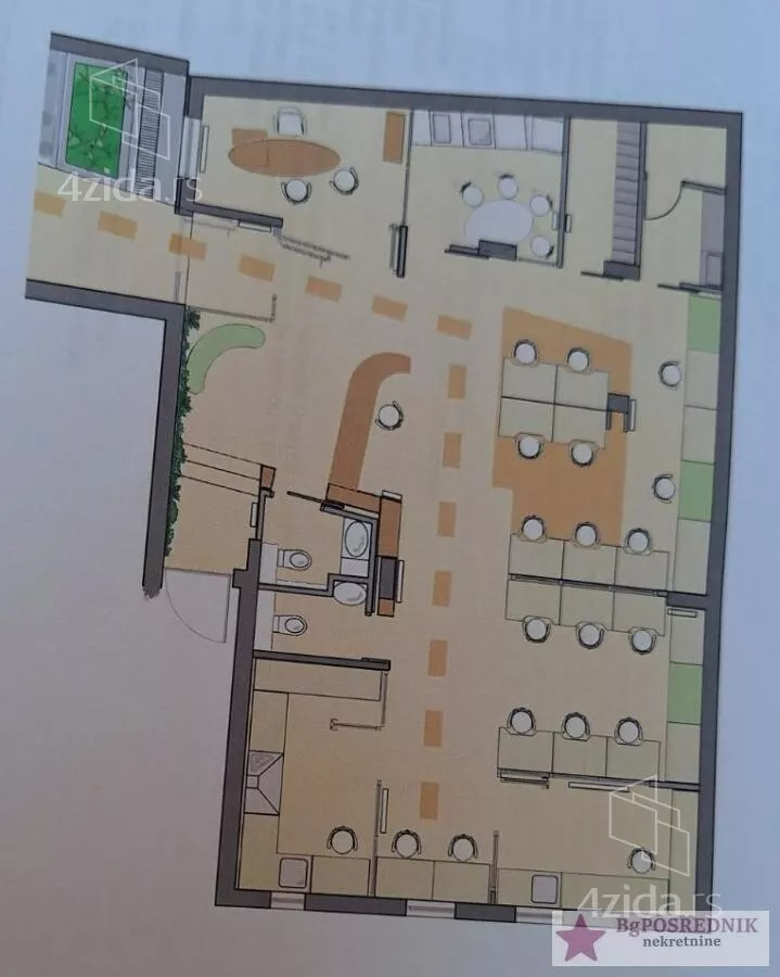 Uz stan se prodaje i garaža uknjižena na 118m2 u koju staje od 8 do 10 automobila, a bez mnogo ulaganja može se opremiti kao poslovni prostor za različite vrste delatnosti (biro, agencija, ordinacija i slično).