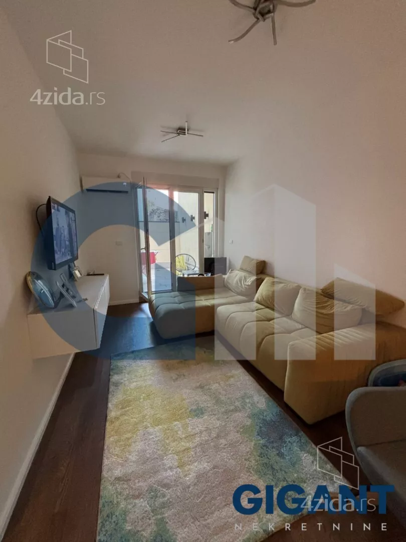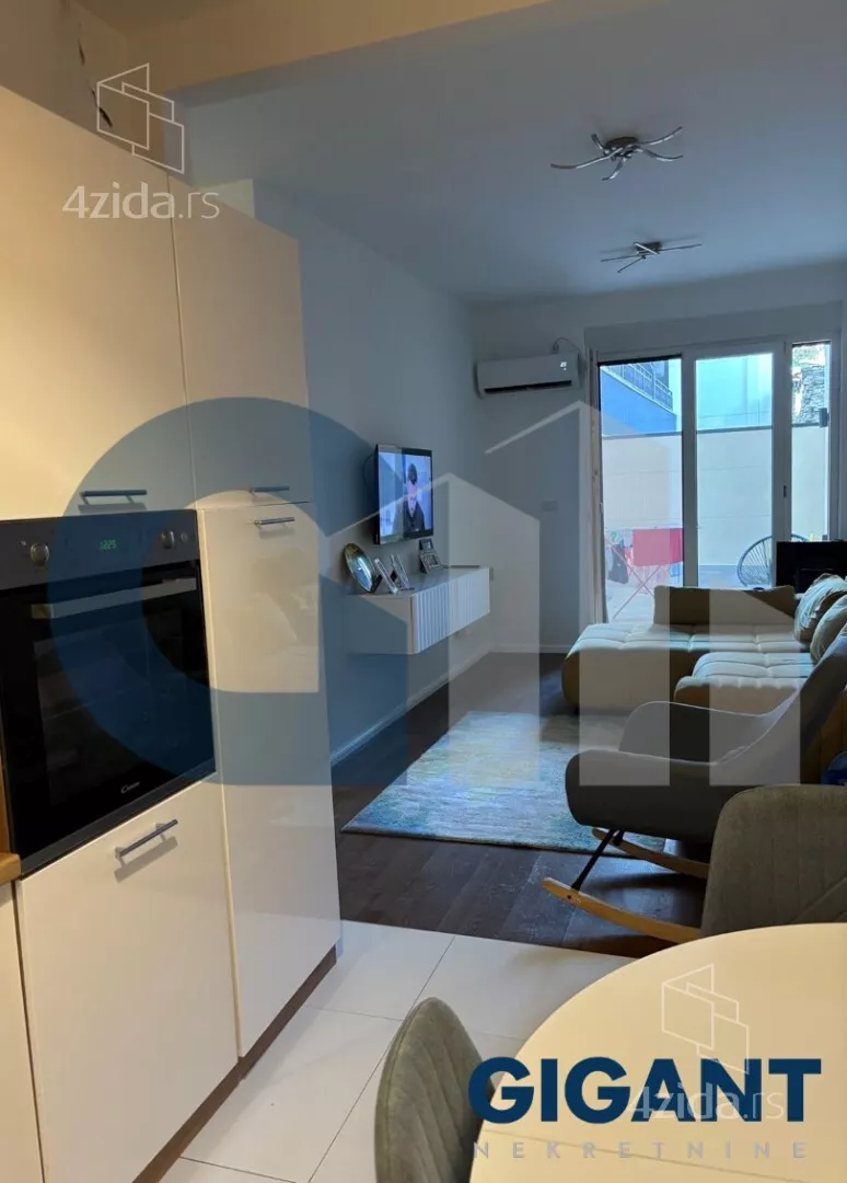 Prostorije: ulazni hodnik, dnevna soba sa kuhinjom i trpezarijom, spavaća soba, kupatilo, terasa.