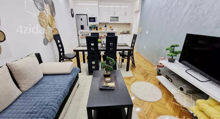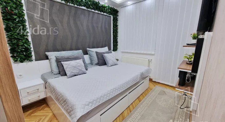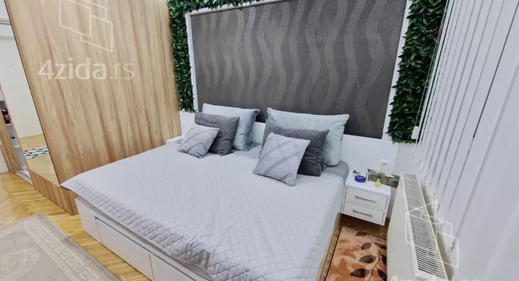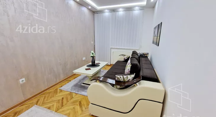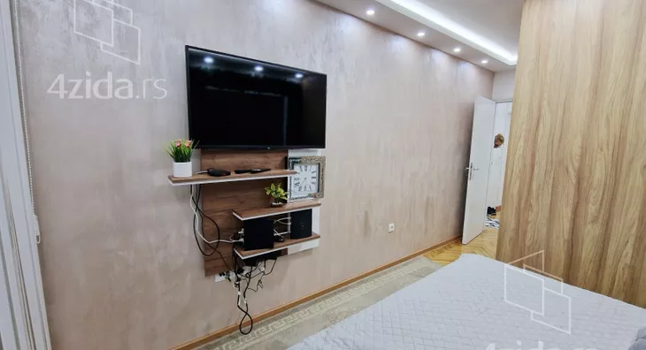 Stan je kompletno renoviran i namešten. Prodaje se sa skoro svim stvarima. Od prostorija poseduje hodnik iz kog se ulazi u sve ostale prostorije.Ima dve spavaće sobe, kupatilo, kuhinju sa dnevnim boravkom i terasu celom širinom stana na koju ima izlaz svaka soba. Zgrada ima CG ali je u stanu odjavljeno i ugrađen je kotao na struju tako da je grejanje po potrošnji. Cela terasa je zatvorena PVC stolarijom i roletnama tako da se može koristiti i zimi i leti. Stan je jugozapadno orjentisan i veoma je svetao i sunčan. Ima ugrađen i sopstveni video nadzor.