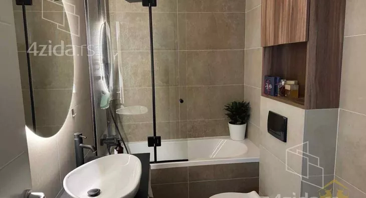- Opremljenost: Namešteno - internet, interfon, TV, klima, veš mašina, sudo mašina, frižider, rerna, ležaj, plakar