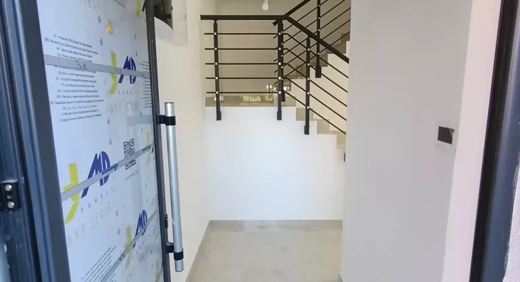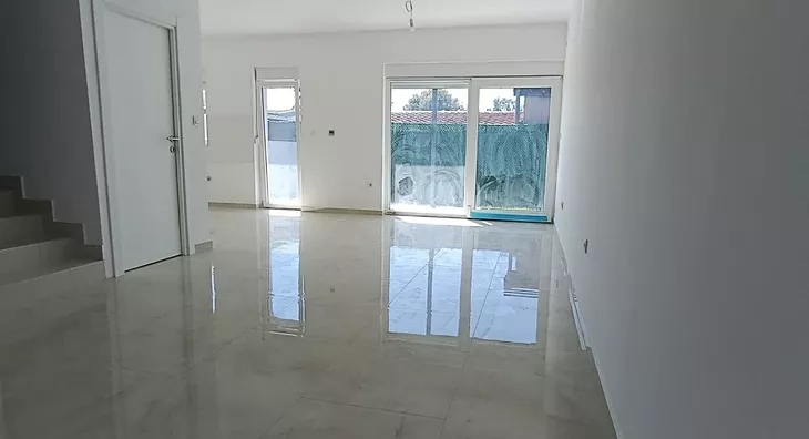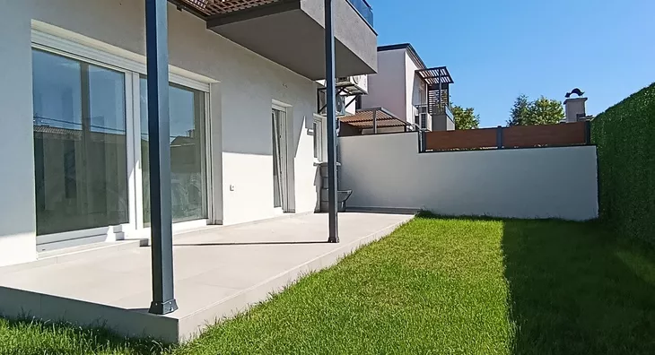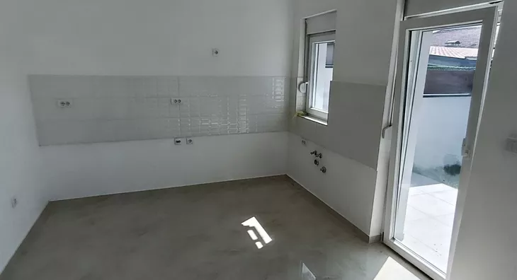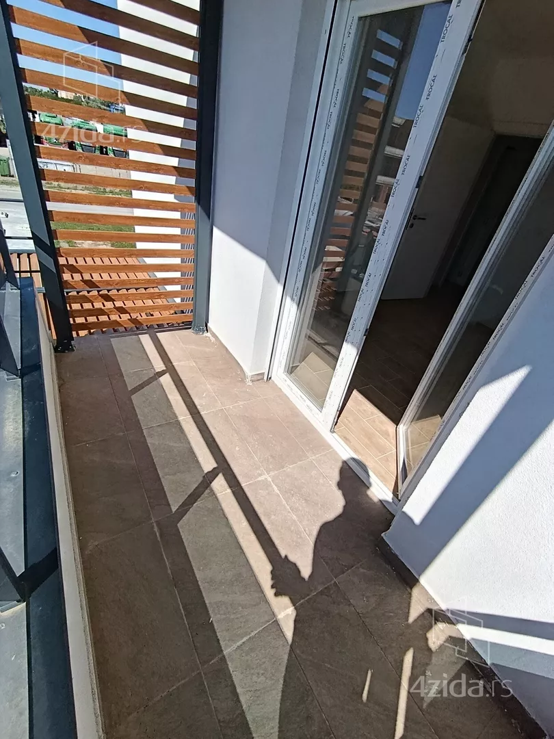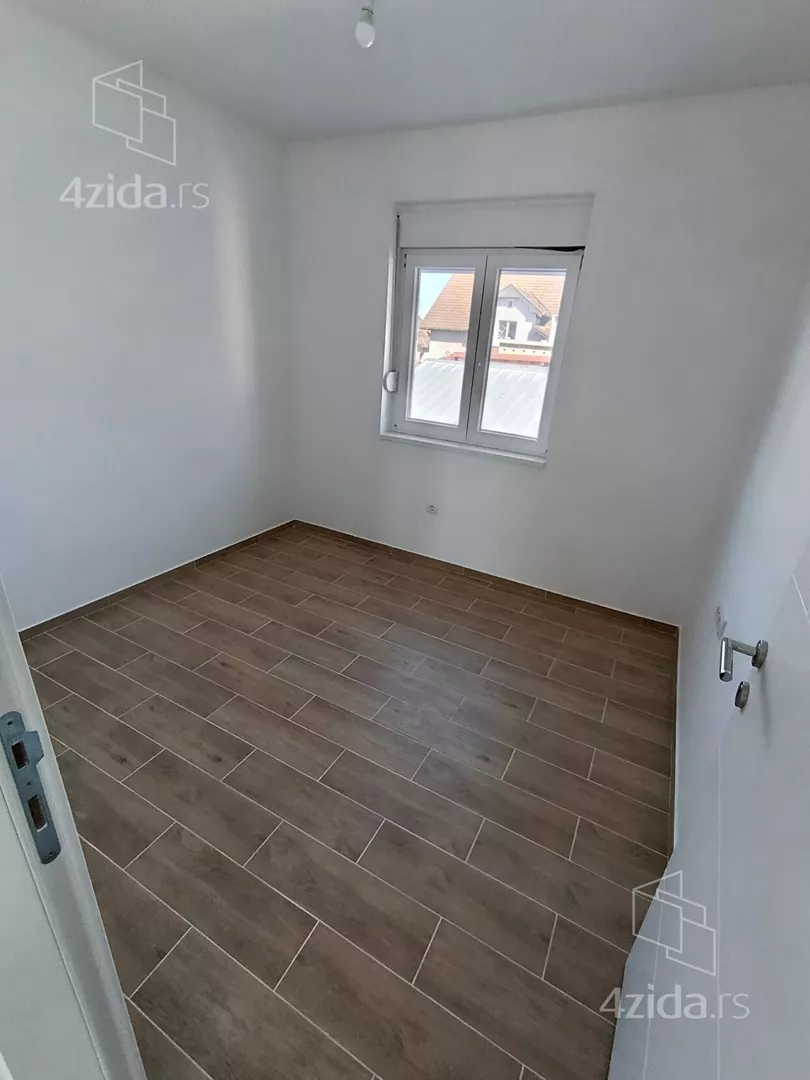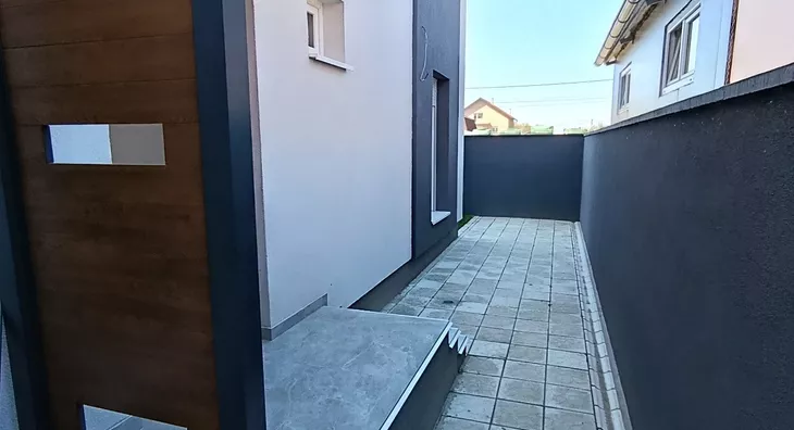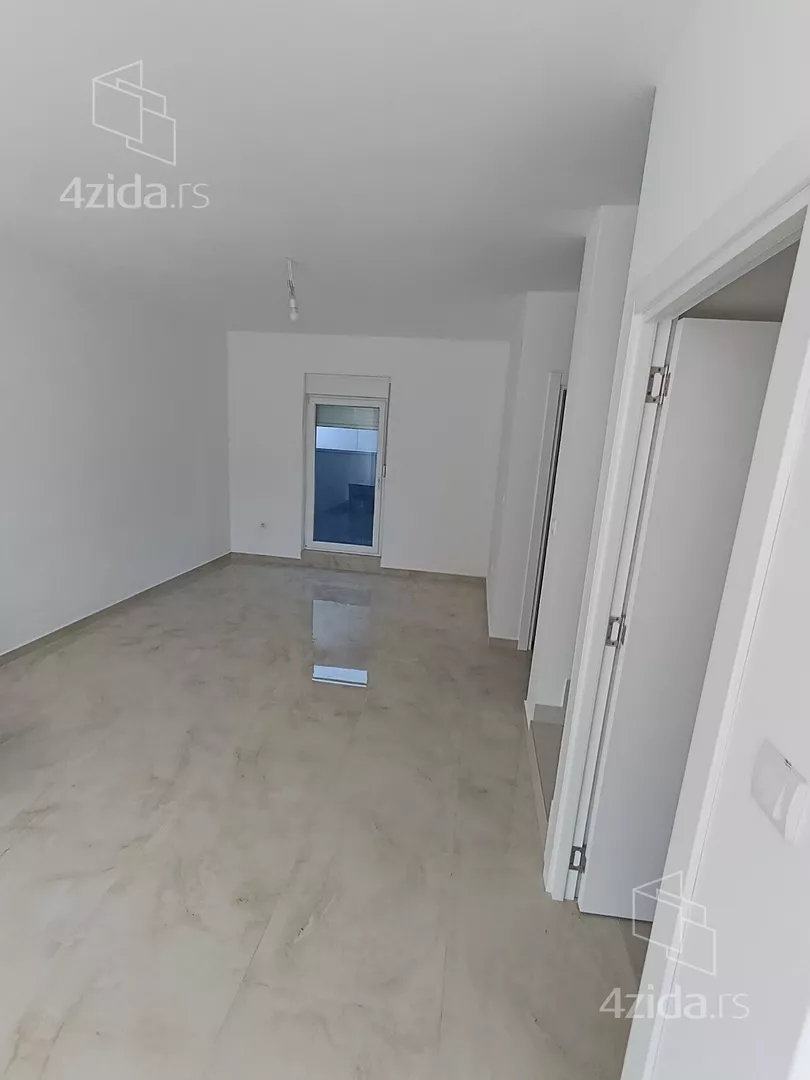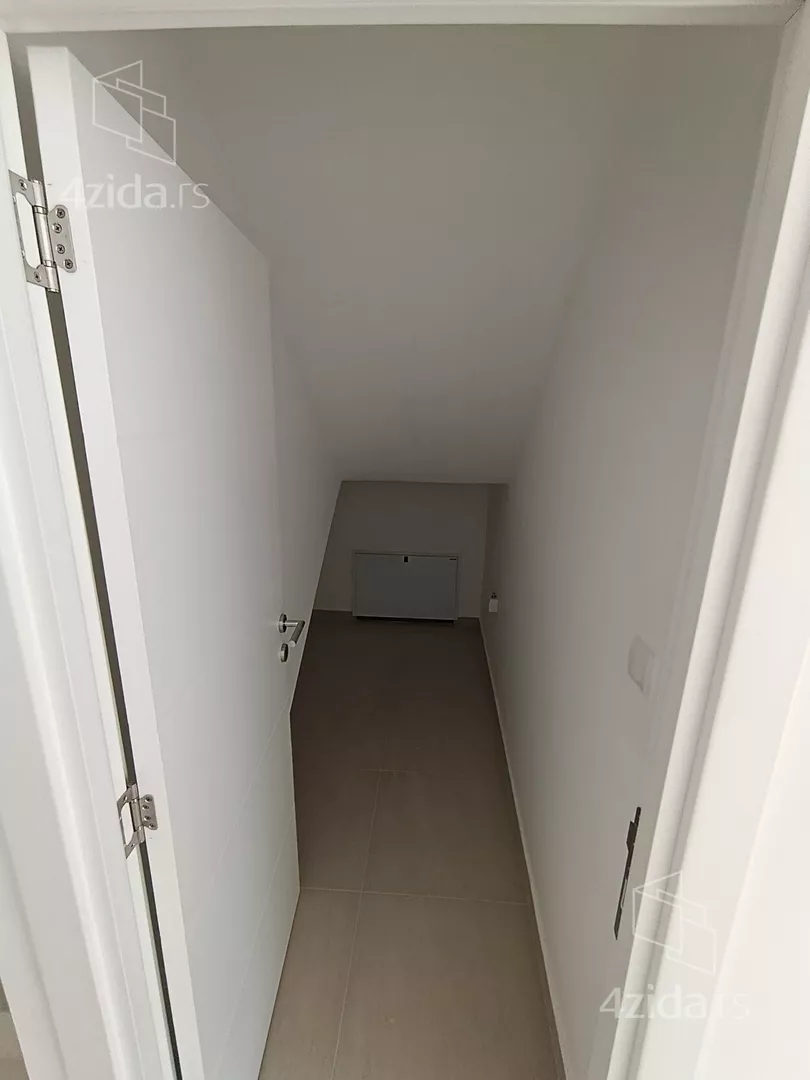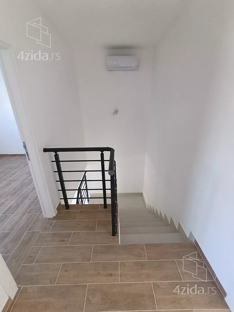 U prirodi se radi o komfornom četvorosobnom stanu od 98 m2 sa sopstvenim dvorištem od oko 90 m2, prostorom ispred stana za ulaz i bicikle,l kao i dva parking mesta za svaki stan (kuću).