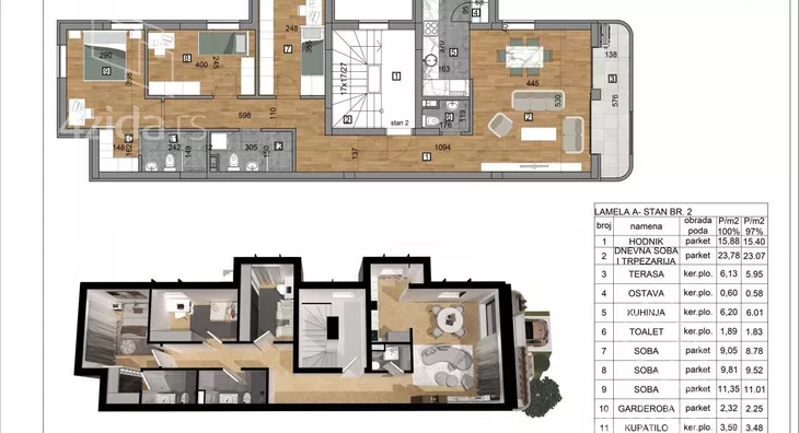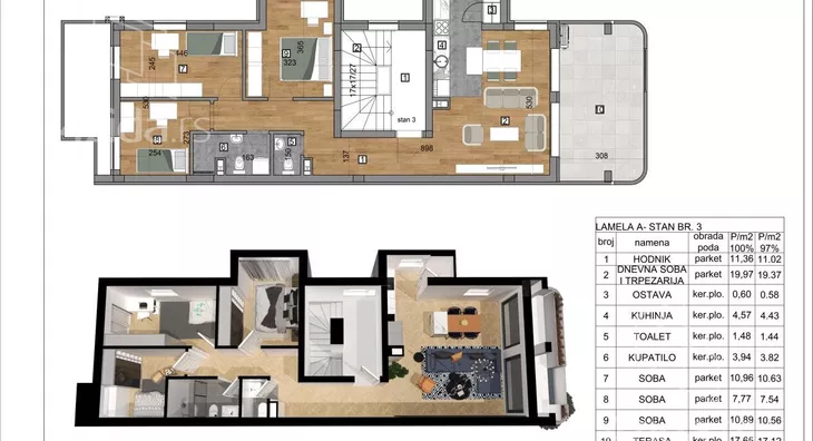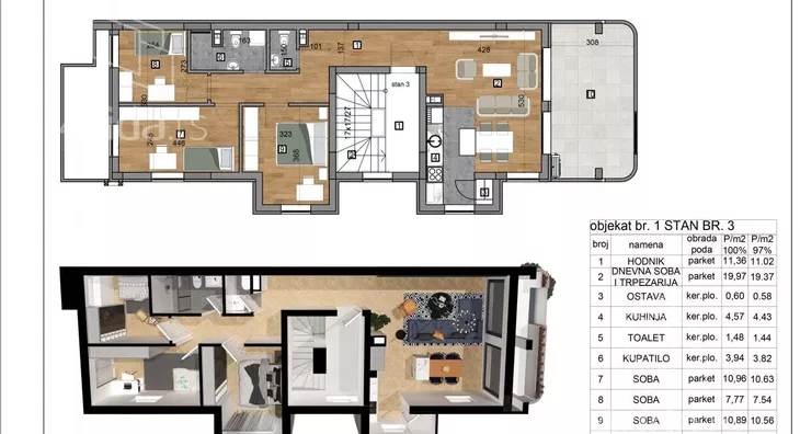 3, Drugi sprat - 92m + ostava u suterenu 24m + Garzno mesto+ parking + krovna terasa sa pogledom na Frušku goru
