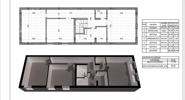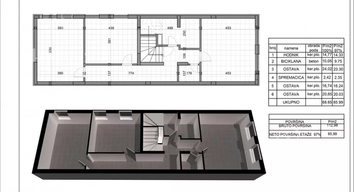 2, Prvi sprat - 86m + ostava u suterenu 24m + Garazno meto + parking