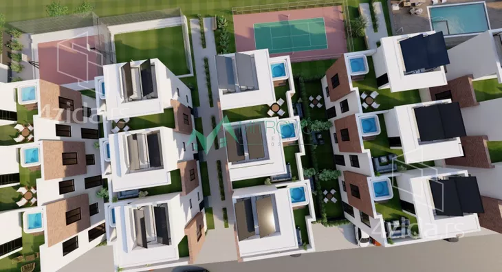 Svaka stambena jedinica je po strukturi četvorosoban stan na dva nivoa plus uređena, ozelenjena i osvetljena krovna bašta (zeleni krov) na kojoj će se nalaziti dodatni sadržaj. Donju etažu čine prostorije sledećeg rasporeda: dnevni boravak sa kuhinjom, toalet i ulazni hodnik sa stepeništem. Gornju etažu čini spavaći blok sa tri spavaće sobe i kupatilom. Treća etaža je privatna krovna terasa - zeleni krov sa pogledom na grad. Krovna terasa će jednim delom biti natkrivena, jednim delom zatvorena te budući stanari mogu ovaj deo koristiti kao "letnju kuhinju", prostor za roštiljanje ili pak prostor gde će se u privatnosti opuštati u sopstvenom džakuziju - ideja je bezbroj.
