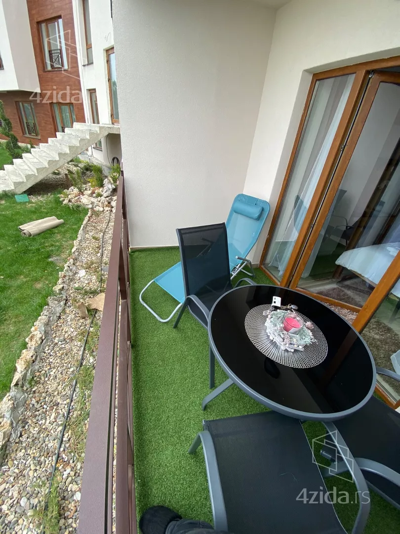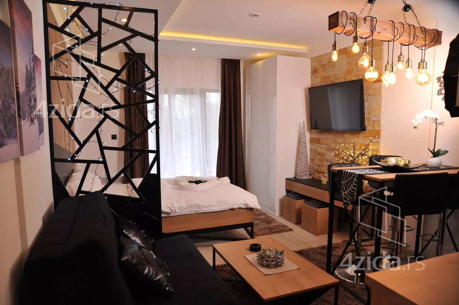 Apartman je u izvornom stanju i bio je povremeno na izdavanju u udarnim terminima sezone. Nameštaj je premium kvaliteta rađen po meri - poseduje TV, kompletnu kuhinju sa svim aparatima, optički internet i kablovsku televiziju. Grejanje je na struju. Ima terasu sa pogledom na dvorište.