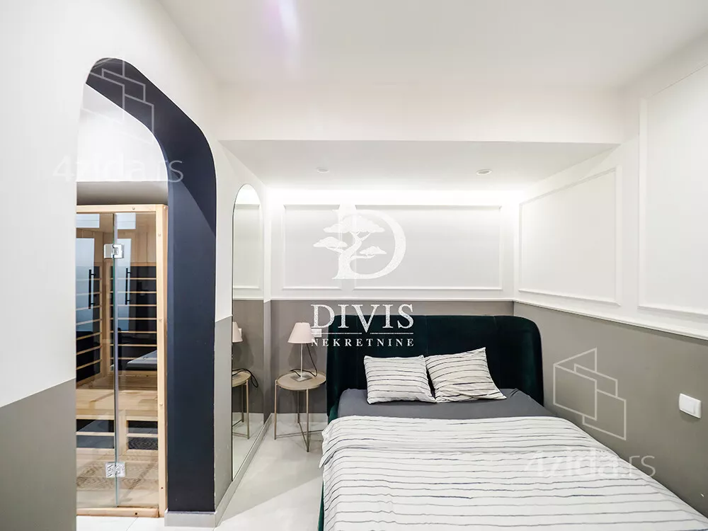 Stan je opremljen za "stan na dan" i izdaje se vec duže vreme sa razvijenim sigurnim biznisom i prilivom koji garantuje isplatu celog stana kroz nekoliko godina. Stan poseduje moderno opremljen dnevni blok sa đakuzijem i manjom kuhinjom, kao i saunom, u drugom delu je spavaci blok izdvojen sa kupatilom.