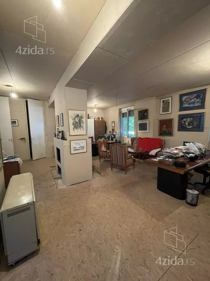 Fantastičan salonac u srcu Vračara, sa pogledom na Kalenić pijacu, a poseban značaj ima što uskoro taj deo postaje Pešačka zona..Stan je u zafršnoj fazi kompletnog renoviranja, koja budućem vlasniku daje mogućnost da sam izabere finalni izgled stana.Stan je projektovan u modernom stilu,sa velikim open space stilom, dvostrukim kaminom, odvojenom spavaćom sobom, velikim kupatilom sa tuš kabinom i delom za hidromasažu.Dvostran je. Urađena je izolacija,duple ploče na zidovima i plafonu, kao i OSB na roštiljskoj podkonstrukciji sa izolacijom od stiropor kuglic ana podu. Zvučna izolacija je odlična sa Alu stolarijom i Alu roletnama.Razvučene su instalacije za radijatore,a ugrađena je i Inverter klima za rashlađivanje i dogrevanje.Troškovi grejanja su minimalniU stanu nema nosećih zidova, tako da se lako može dobiti još jedna soba.Visina plafona 3.05-3,5m.Idealna prilika da kupac unese sopstvenu notu uz minimalna ulaganja.Prodaje se i kao poslovni prostor, za ordinacije, kancelarije, stan na dan i za život uopšte. Retko u ponudi. Ag. provizija 2%.