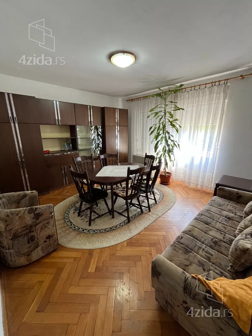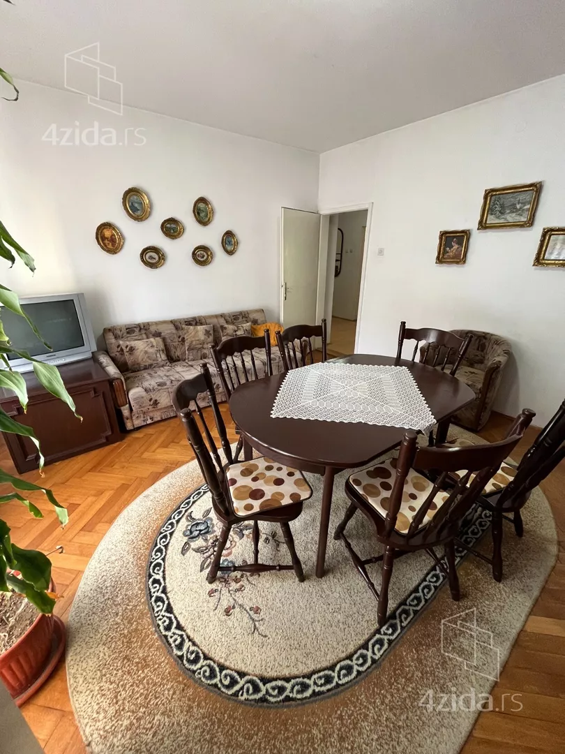 Dvoiposoban stan u starijoj gradnji, uknjižen 1/1, bez tereta. Nalazi se u mirnom delu grada, u zgradi sa samo četiri stana u ulazu, na prvom spratu. Dvostrano orijentisan, delimično renoviran, grejanje na struju. Sastoji se od dve sobe, trpezarije sa kuhinjom, hodnika, kupatila i ostave. Uz stan idu garaža i šupa van objekta. U blizini su pošta, škola, market i park.