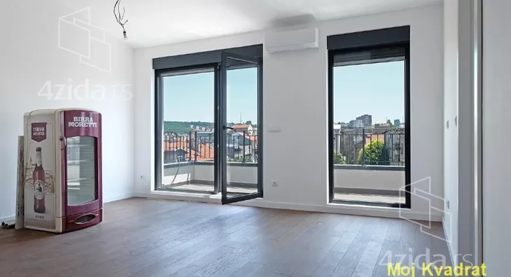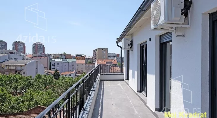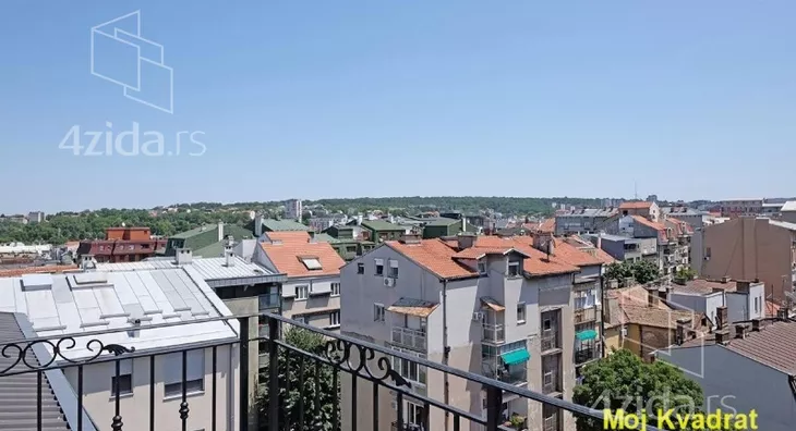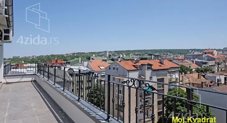 U ponudi je odličan penthaus u novogradnji, u blizini Bulevara kralja Aleksandra. Dvostrano je orjentisan, tako da sa jedne terase ima pogled na Crkvu Svetog Marka, a sa druge na Istočnu kapiju Beograda.