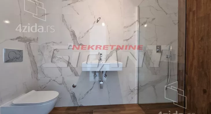 Termička i zvučna izolacija su građeni po najvišim standardima, aluminijumski prozori sa roletnama, podno grejanje na toplotne pumpe, klimatizacija je izvedena u svakoj prostoriji zasebno. Keramika je granitna, sanitarije vrhunskog kvaliteta i izgleda (španska i italijanska). Lux ulazna Bosal vrata, opremljena sigurnosnim bravama.