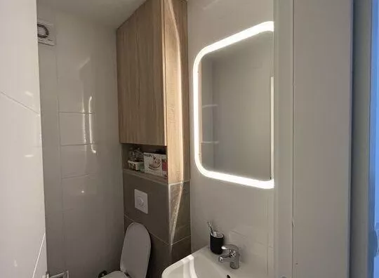- Opremljenost: Polunamešteno - kuhinjski elementi, ugradni plakar
