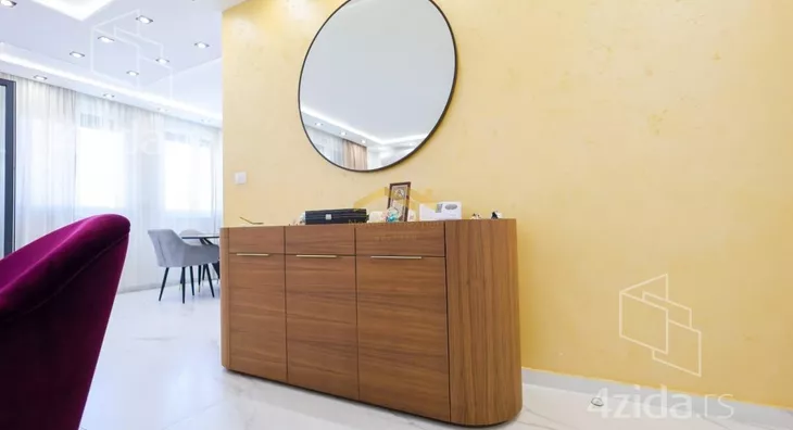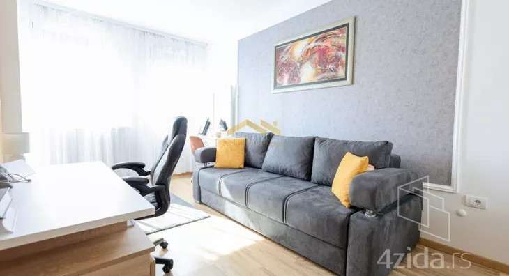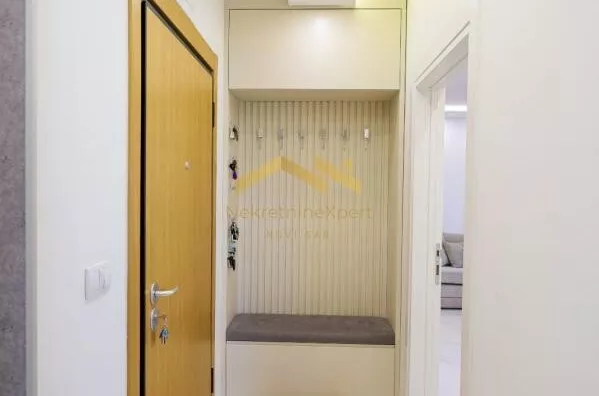 Stan se nalazi u modernoj i održavanoj zgradi sa liftom i video nadzorom, a dodatnu pogodnost čini činjenica da je stan jedini na spratu, čime se obezbeđuje potpuna privatnost i mir. Grejanje je povezano na toplanu, ali se plaća po utrošku, dok su u kupatilima ugrađeni protočni bojleri. Enterijer stana je pažljivo osmišljen – dominiraju visokokvalitetni materijali, poput granita, dok je nameštaj izrađen od masivne orahovine. Stan je opremljen elektro roletnama, LED rasvetom i Roca ugradnim vodokotlićima.