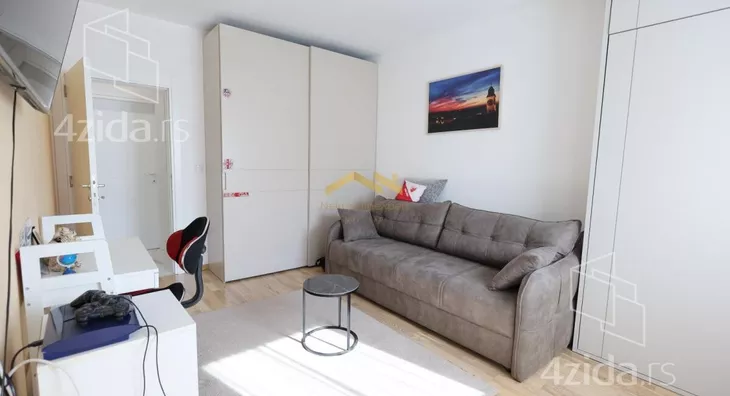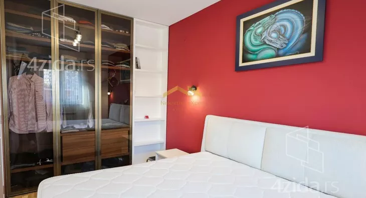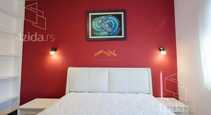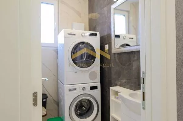 - Opremljenost: Namešteno - internet, interfon, TV, klima, veš mašina, sudo mašina, frižider, rerna, ležaj, plakar