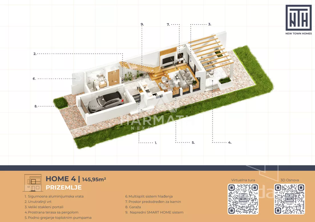 NA PRODAJU – MODERNA PAMETNA KUĆA 187 m² + DVORIŠTE 167 m² Sa modernim sadržajima i prijatnom atmosferom, kuća površine 159 m² predstavlja savršeno mesto za budući dom. Prostrano dvorište od 140 m² idealan je nastavak životnog prostora – savršeno mesto za opuštanje i odmor. Ono što ovu kuću izdvaja jeste pametna tehnologija i vrhunski kvalitet gradnje – spoj modernog dizajna, komfora, sigurnosti i energetske efikasnosti. Struktura kuće Prizemlje: •Garaža •Ulazni hodnik •Kupatilo •Kuhinja •Dnevna soba i trpezarija •Stepenište •Natkrivena terasa Sprat: •Spavaća soba •2 dodatne sobe •Hodnik / stepenište •2 kupatila •Vešeraj SMART tehnologija – Pierre Smart Home Ova kuća je opremljena Pierre pametnim sistemom (http://www.smartpierre.rs) koji omogućava: •Ulazak pomoću mobilnog telefona, RFID kartice ili koda •Inteligentno upravljanje rasvetom •Daljinsku kontrolu grejanja i hlađenja •Automatizovano upravljanje zavesama i roletnama •Pametan alarmni sistem i video nadzor •Interfon sa komunikacijom čak i kada niste kod kuće •Detekciju opasnosti (požar, gas, voda, provala) •Automatizovano zalivanje dvorišta •Upravljanje potrošnjom energije i uštedu troškova Materijali i oprema •Klimabloc 25 i Klimabloc 25 AKU – vrhunska termo i zvučna izolacija, ušteda grejanja 40–70% •ALUMIL stolarija – termoizolovani prozori, podizno-klizni portali i roletne sa protivprovalnom zaštitom •ALUMIL sigurnosna vrata – modernog dizajna, energetski efikasna i bezbedna •Tarkett parket prve klase – otporan na habanje, odlična zvučna i toplotna izolacija •Keramika prve klase – kupatila i kuhinja opremljeni keramikom velikih formata, spolja granitna keramika (mrazootporna) •Sanitarije renomiranih proizvođača I klase Lokacija Kuća je smeštena na izuzetnoj lokaciji, udaljenoj svega 7 minuta vožnje od centra grada. U okruženju se nalaze svi važni sadržaji za svakodnevni život – marketi, škole, vrtići, teretane i stajališta javnog prevoza – što ovu adresu čini praktičnim i udobnim mestom za život. Smeštena je između ulica Partizanskih baza i 51. Divizije, u blizini kružnog toka u Kireškoj ulici. Cena: 280.500,00 EUR+PDV Ova kuća nudi spoj modernog života, komfora i sigurnosti – idealan izbor za porodice koje žele savremeni dom sa dugoročnom vrednošću. Pozovite nas za više informacija i razgledanje!