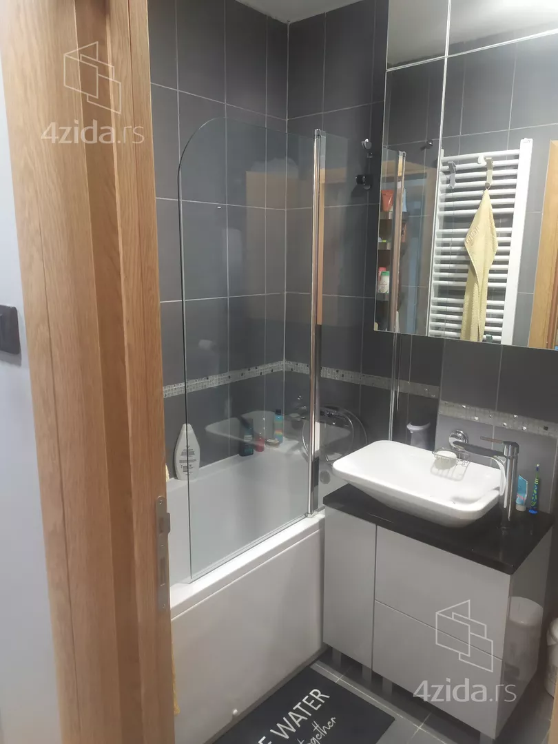 - Opremljenost: Namešteno - internet, TV, klima, veš mašina, kuhinjski elementi, sudo mašina, frižider, zamrzivač, mikrotalasna rerna, šporet, rerna, ležaj, plakar, ugradni plakar