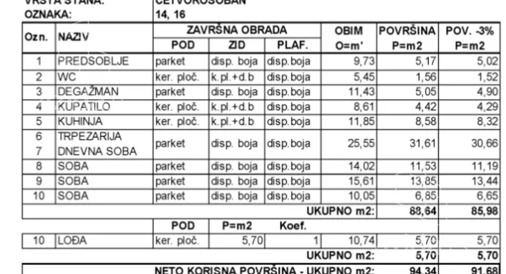 Stan površine 91,68 m² odlikuje se odličnim rasporedom prostorija: