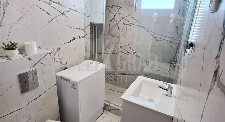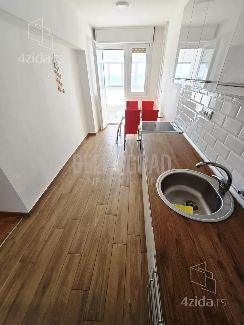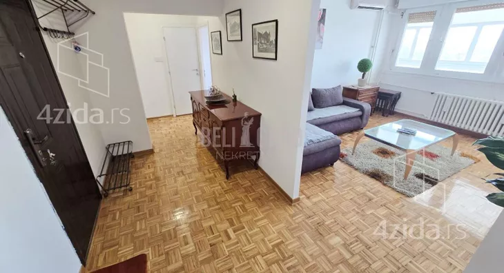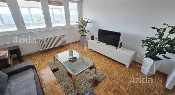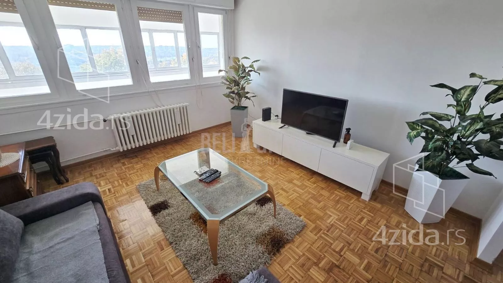 Odličan 2.0 stan, kompletno renoviran, uknjižen na 62 kvm, stvarno mereno sa lođam 76 kvm, mogućnost proširenja stana za još 7,5 kvm. Pored toga, stan koristi i veliku krovnu terasu u produžetku stana. Stan je jugo - zapadno orijentisan, sunčan i svetao, sa predivnim panoramskim pogledom ka gradu. Blizina prevoza, škole, obdaništa, prodavnica, auto - puta, Bulevara kralja Aleksandra i drugo. Prostorije: predsoblje, kuhinja sa trpezarijom, dnevni boravak, spavaća soba, kupatilo, lođa Agencijska provizija 2%
