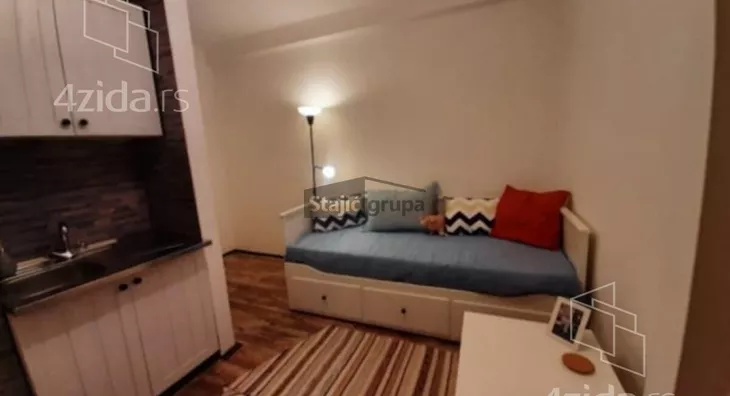 Stan je odličan i funkcionalan za stanovanje dve osobe. Do sada je bio izdavan. Lokacija odlična. Uknjižen na 11m2, korisno 17m2. Prostorije: predsoblje, soba sa kuhinjom i trpezarijskim blokom, kupatlo.