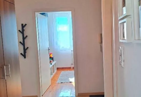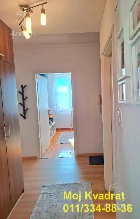 Iz hodnika se ulazi u sve prostorije: kuhinja sa trpezarijom, dnevna soba koja izlazi na terasu, kupatilo, dečija soba i spavaća soba sa velikim garderoberom.